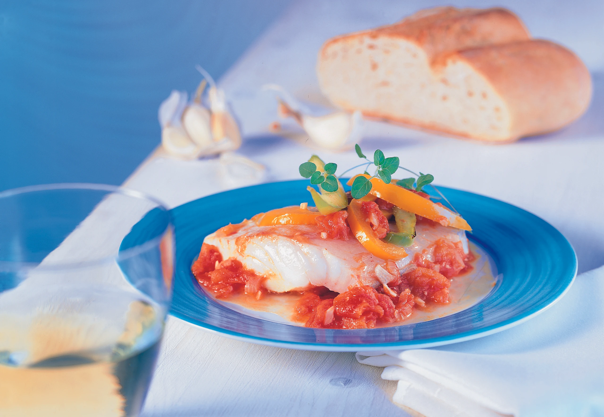 Sizilianisches Fischfilet in Paradeiser-Paprikasauce