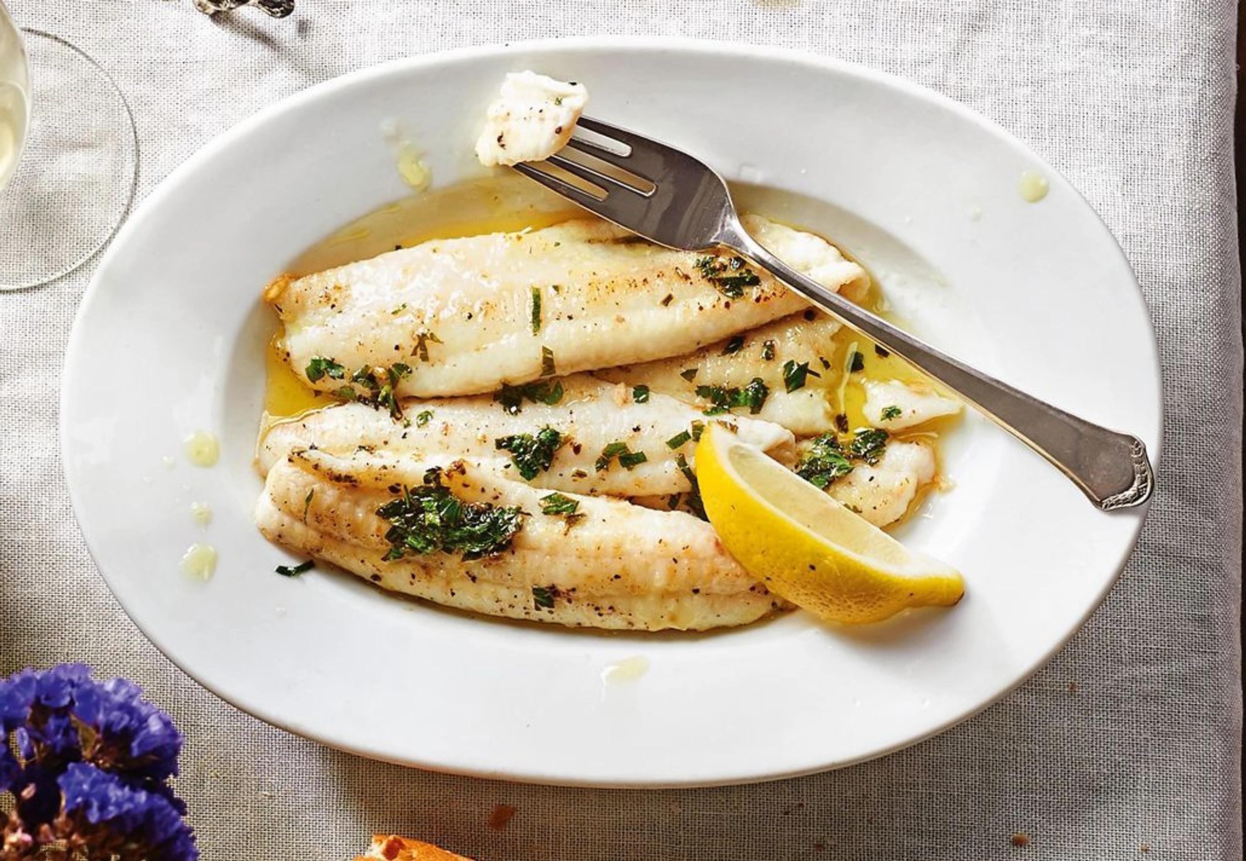 Olivenöl in einer Pfanne stark erhitzen. Filets einlegen und ca. 2 Minuten braten. Filets wenden, Butter zufügen und aufschäumen. Zitronensaft und Petersilie zugeben. Fisch anrichten, großzügig mit der Petersilbutter beträufeln und mit Zitronenspalten servieren.