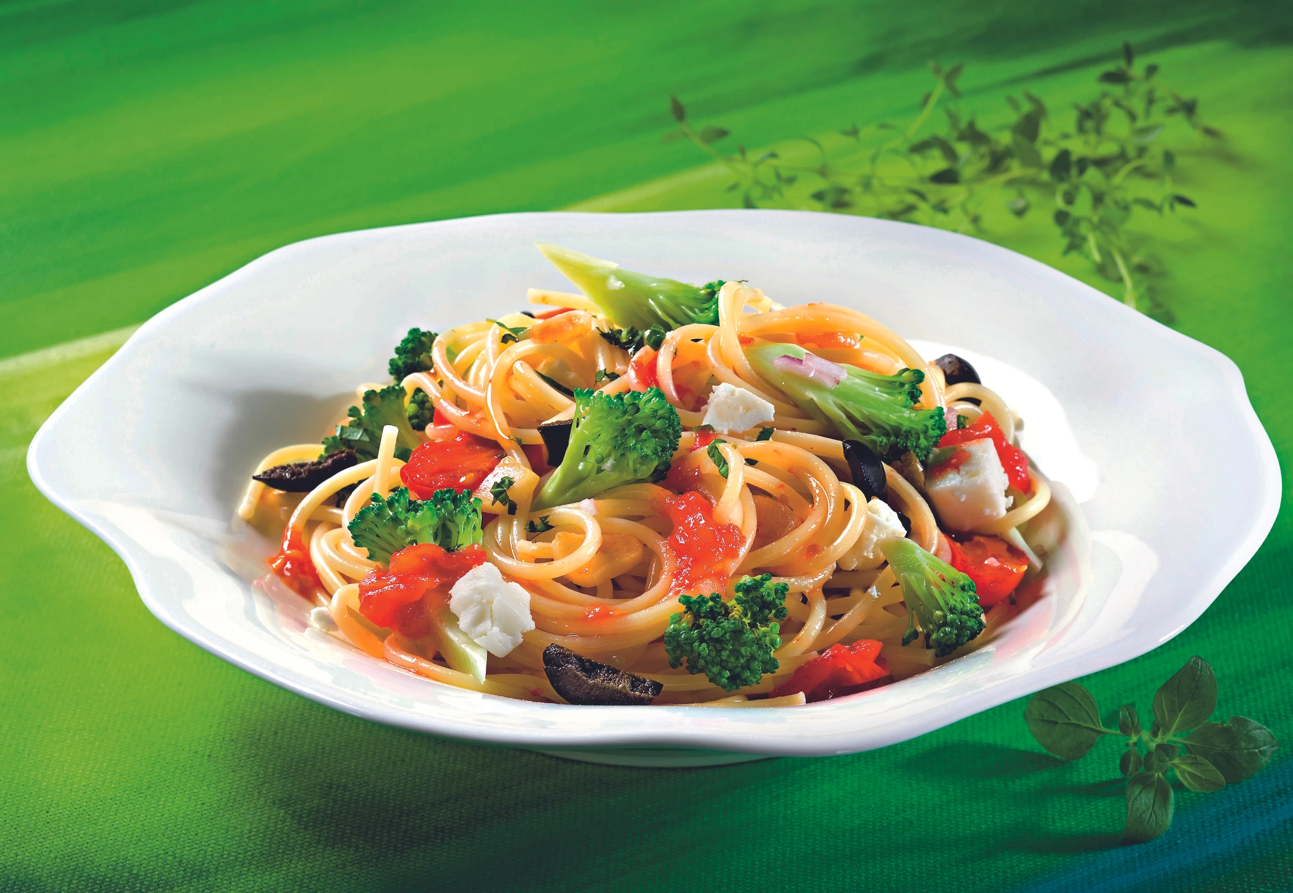 Spaghetti mit Brokkoli, Schafkäse und Paradeisern