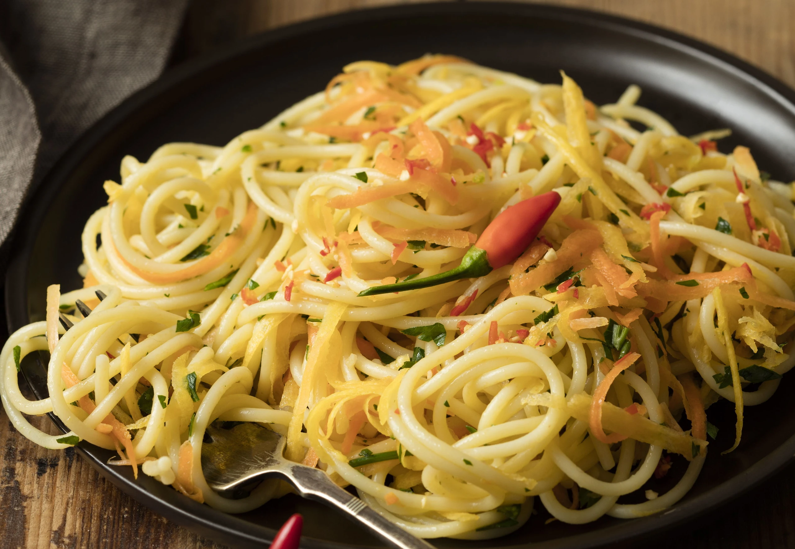 Spaghetti mit Gemüse und Chili