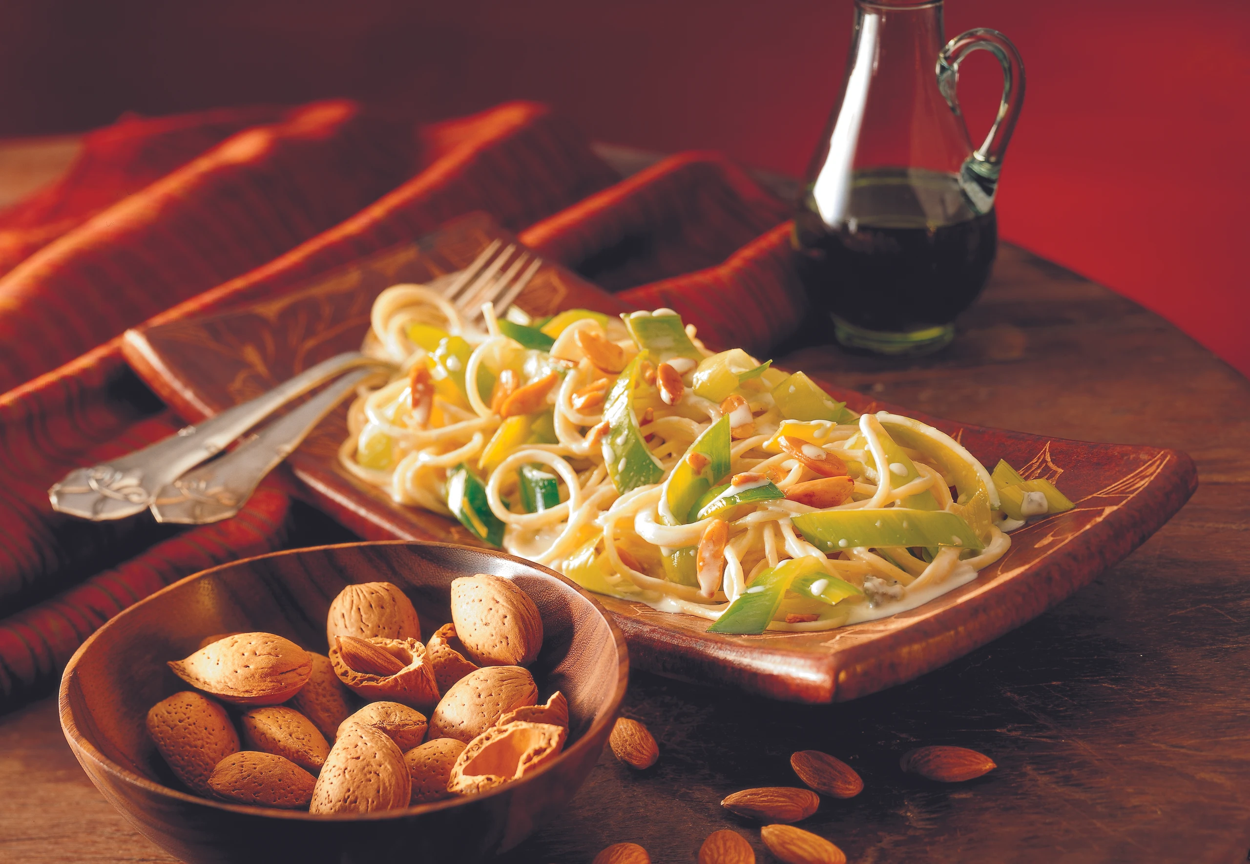 Spaghetti mit Lauch und Mandel-Gorgonzola-Sauce