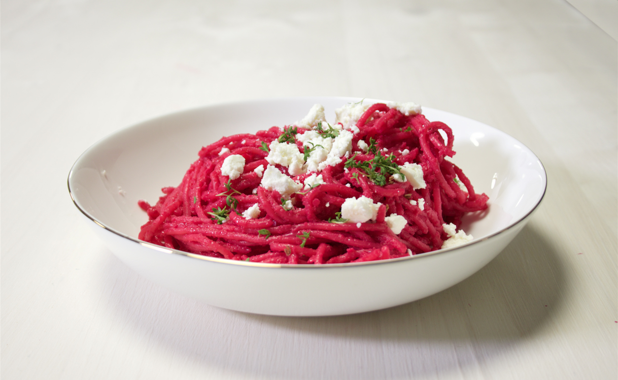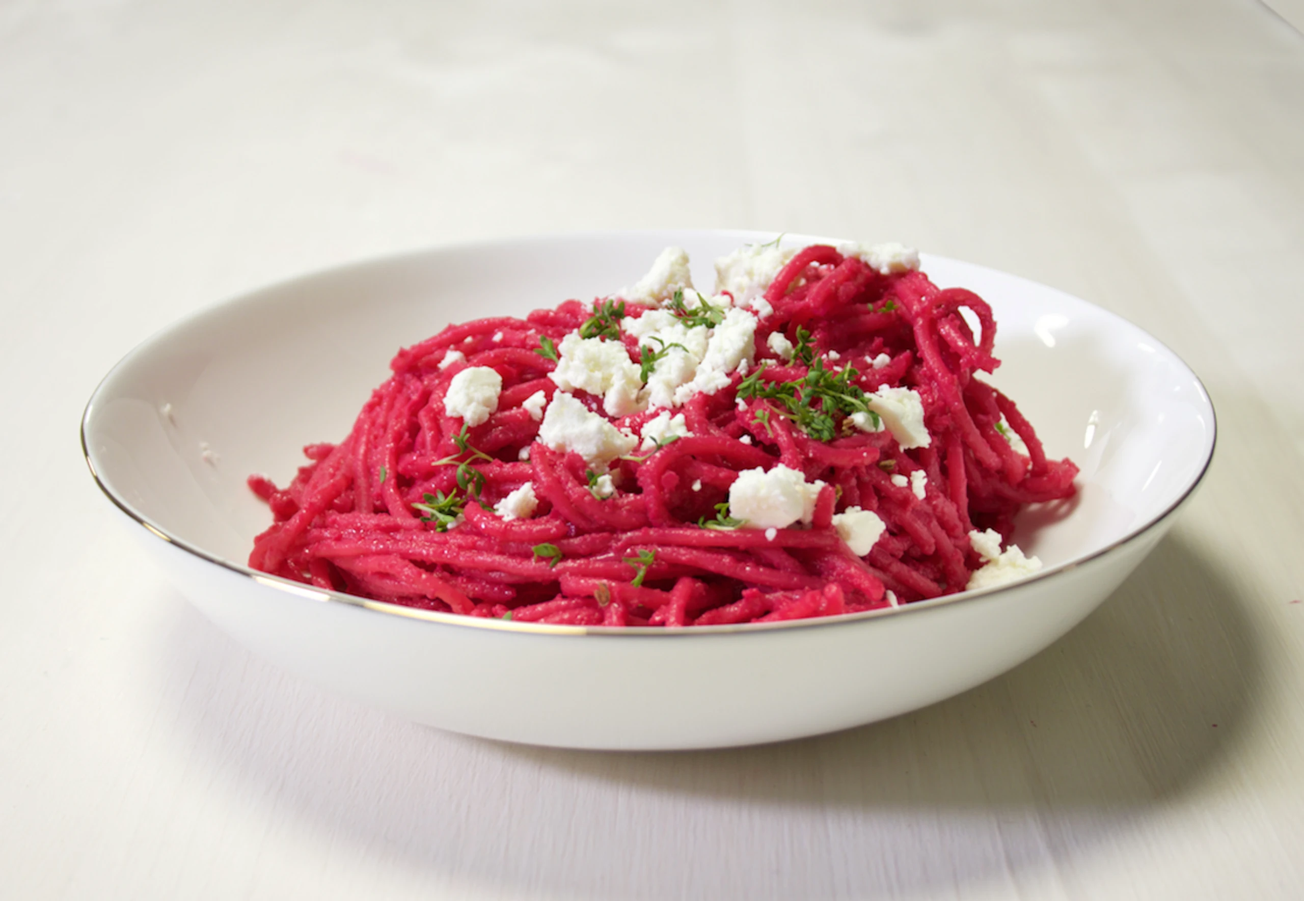 Spaghetti mit Rote-Rüben-Pesto und Feta