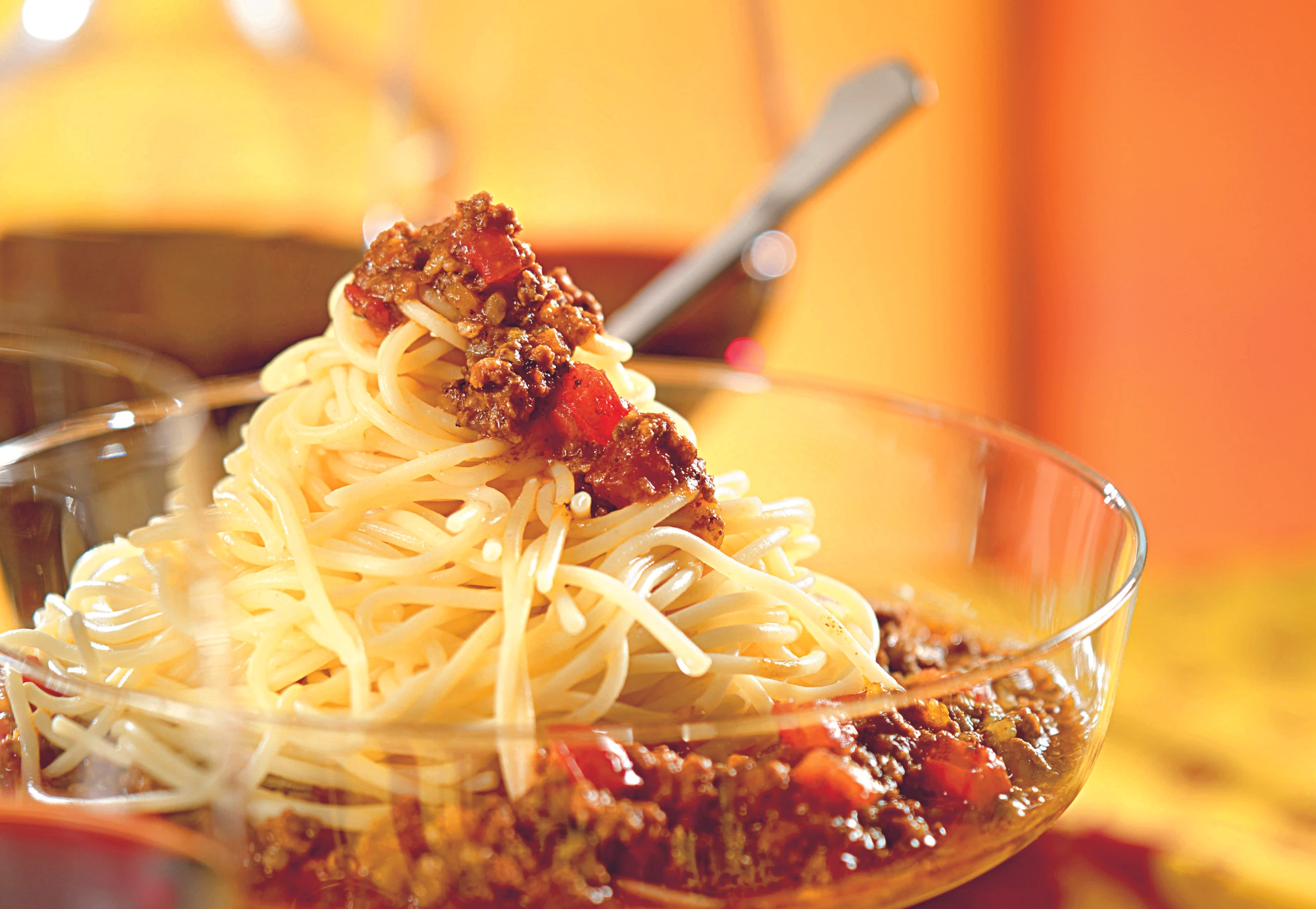 Paradeiser zugeben und die Mischung mit Wasser bedeckt aufgießen. Rosmarin und Lorbeer zugeben, die Sauce bei schwacher Hitze ca. 1 Stunde köcheln; dabei öfters umrühren. Sauce mit Salz und Pfeffer abschmecken.