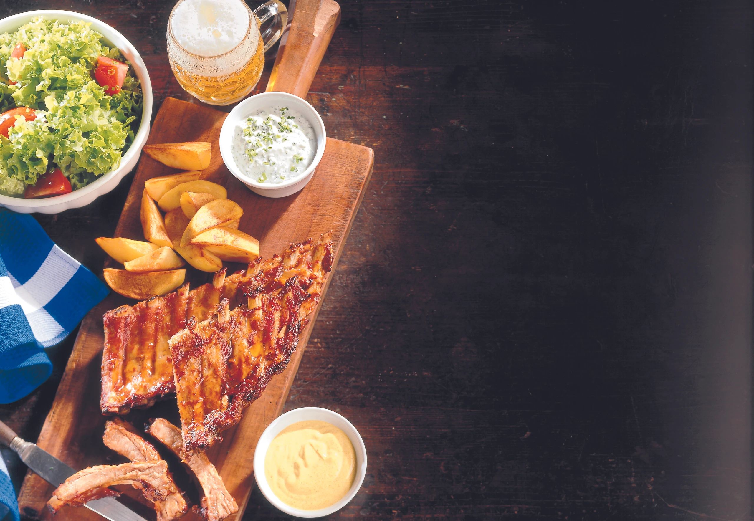 Spareribs mit Braterdäpfeln und zweierlei Saucen