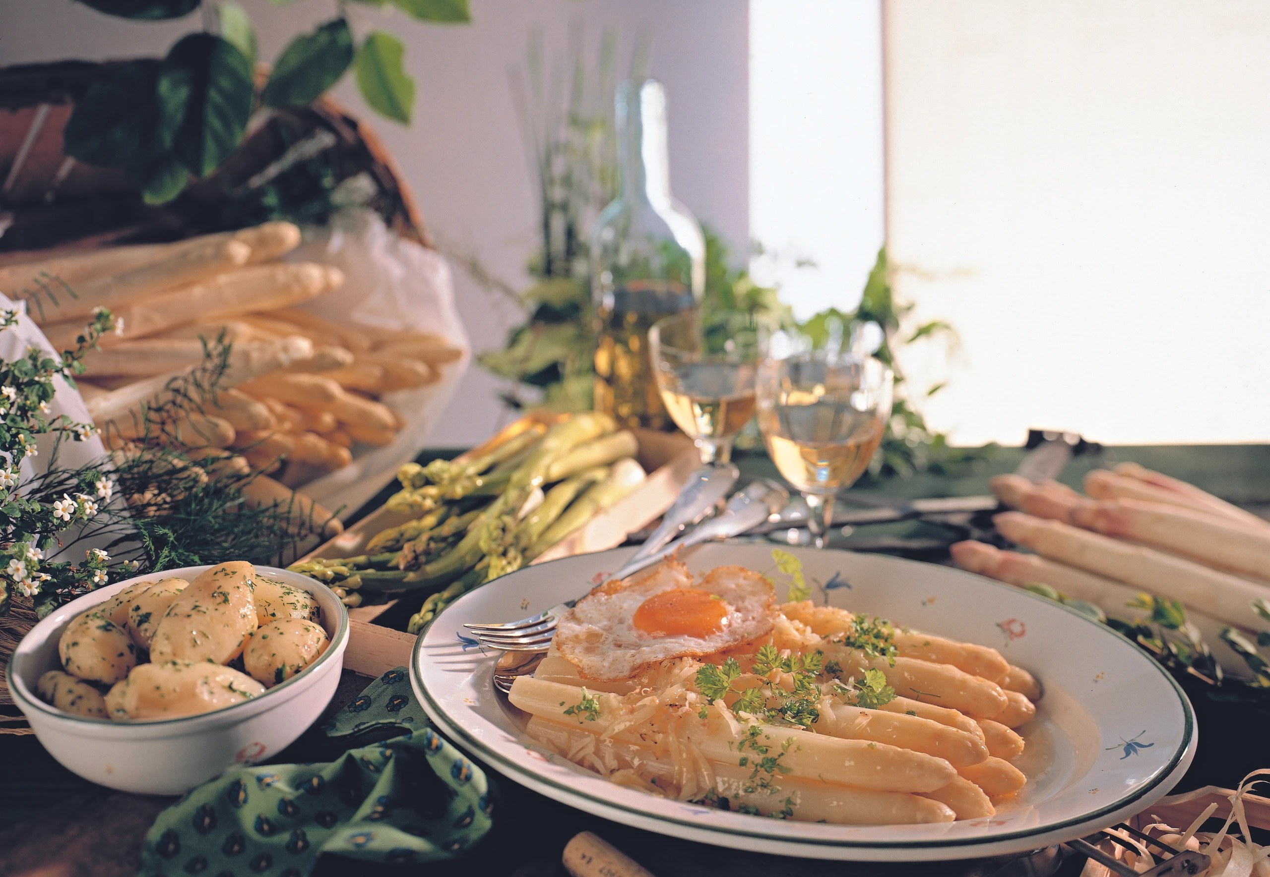 Spargel auf Schweizer Art mit Petersilerdäpfeln