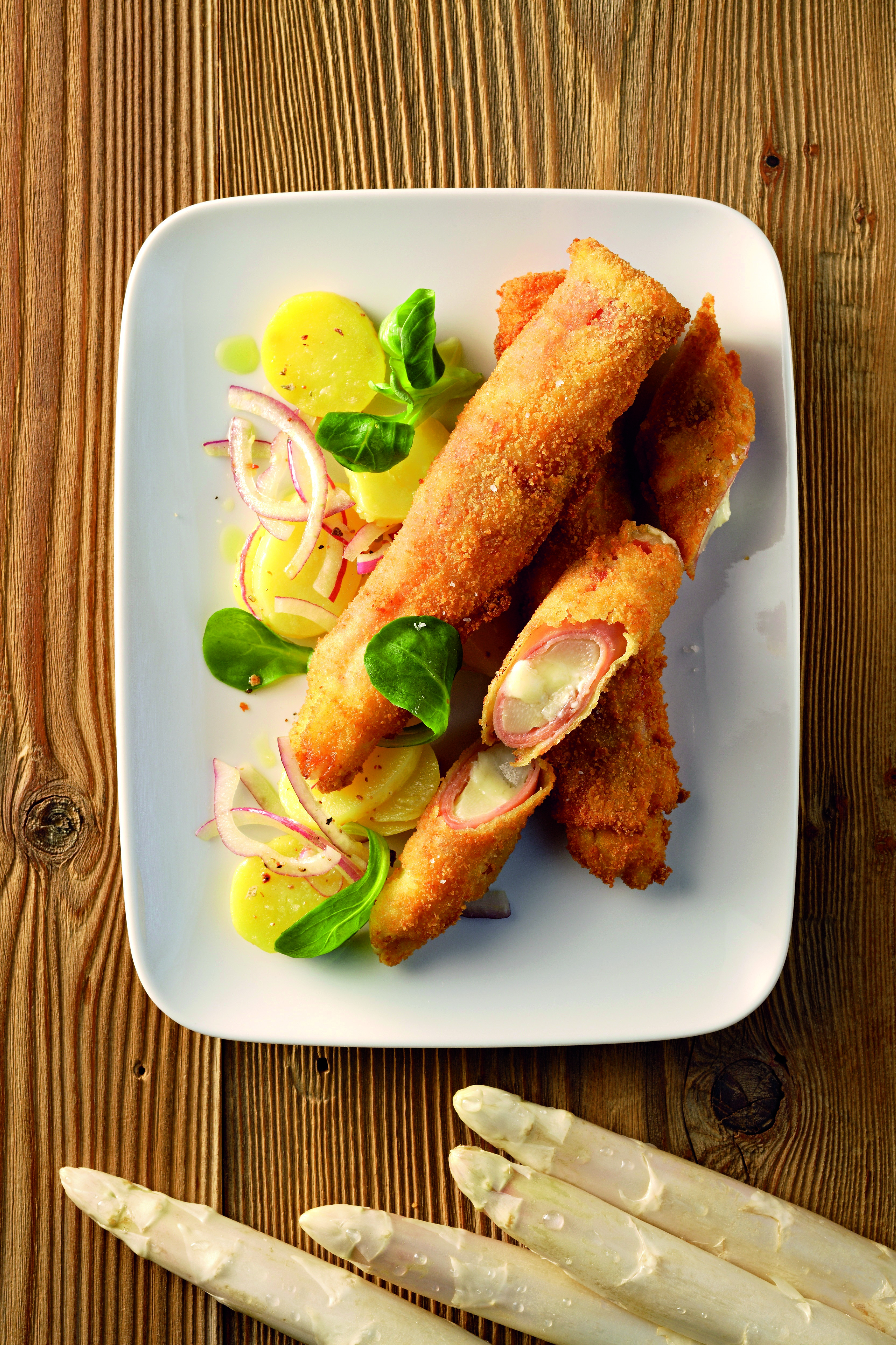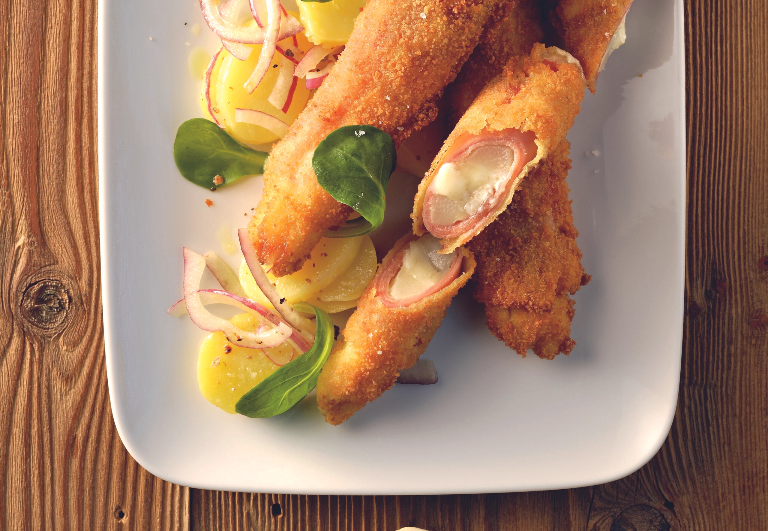 Spargel-Cordon-bleu auf Erdäpfel-Vogerlsalat