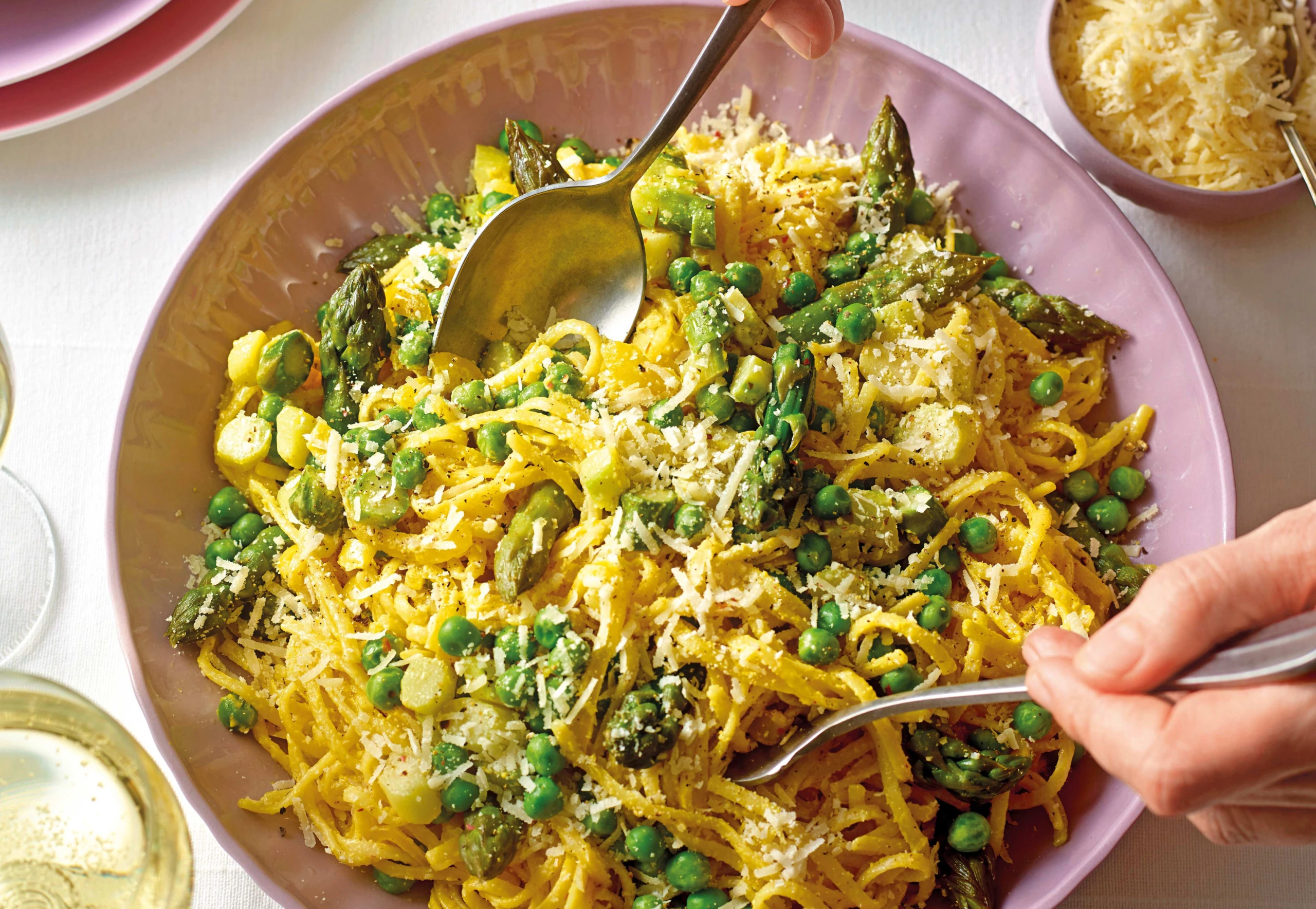 Spargel-Linguine mit zitroniger Safransauce
