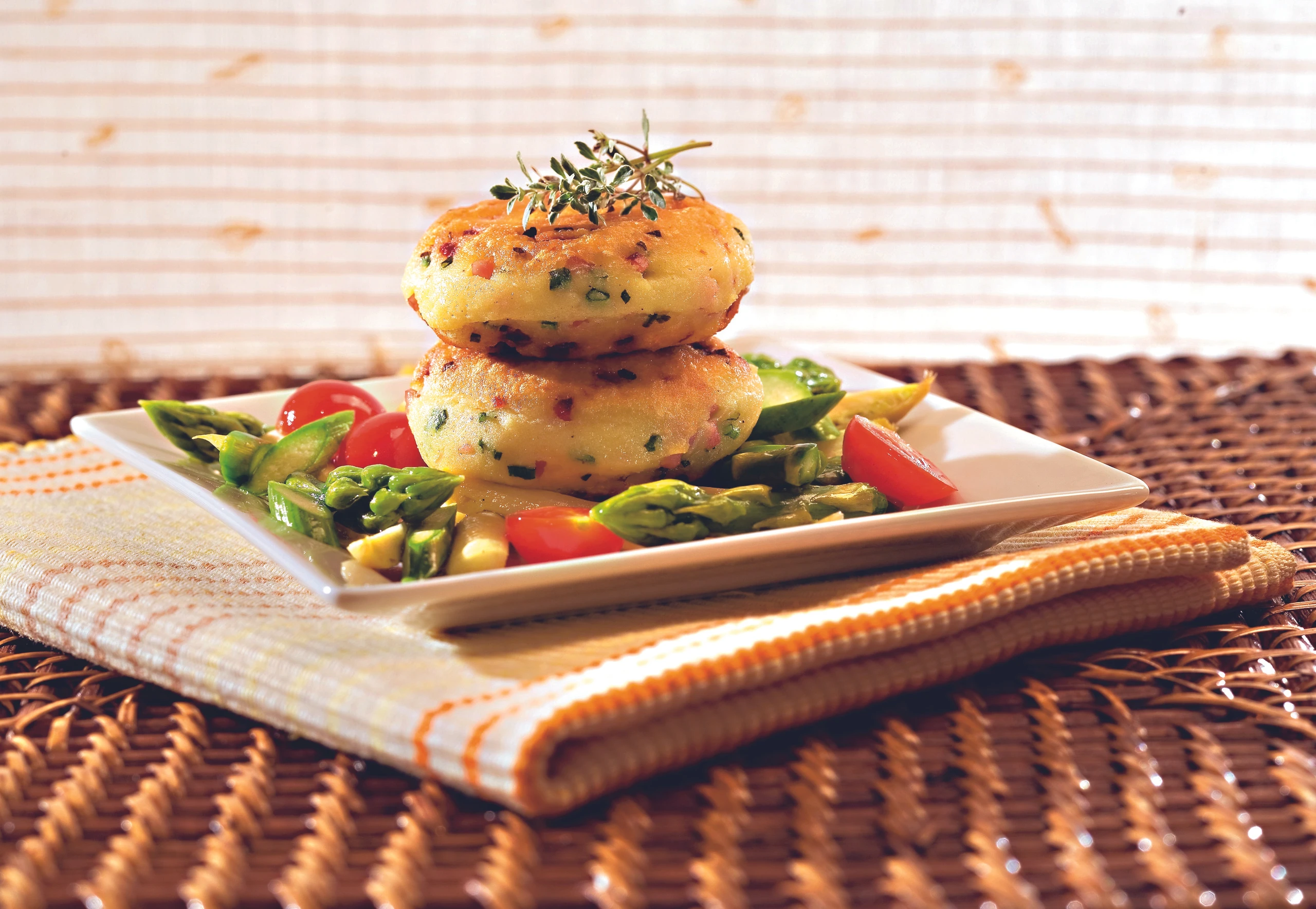 Spargel mit Erdäpfel-Schinken-Talern