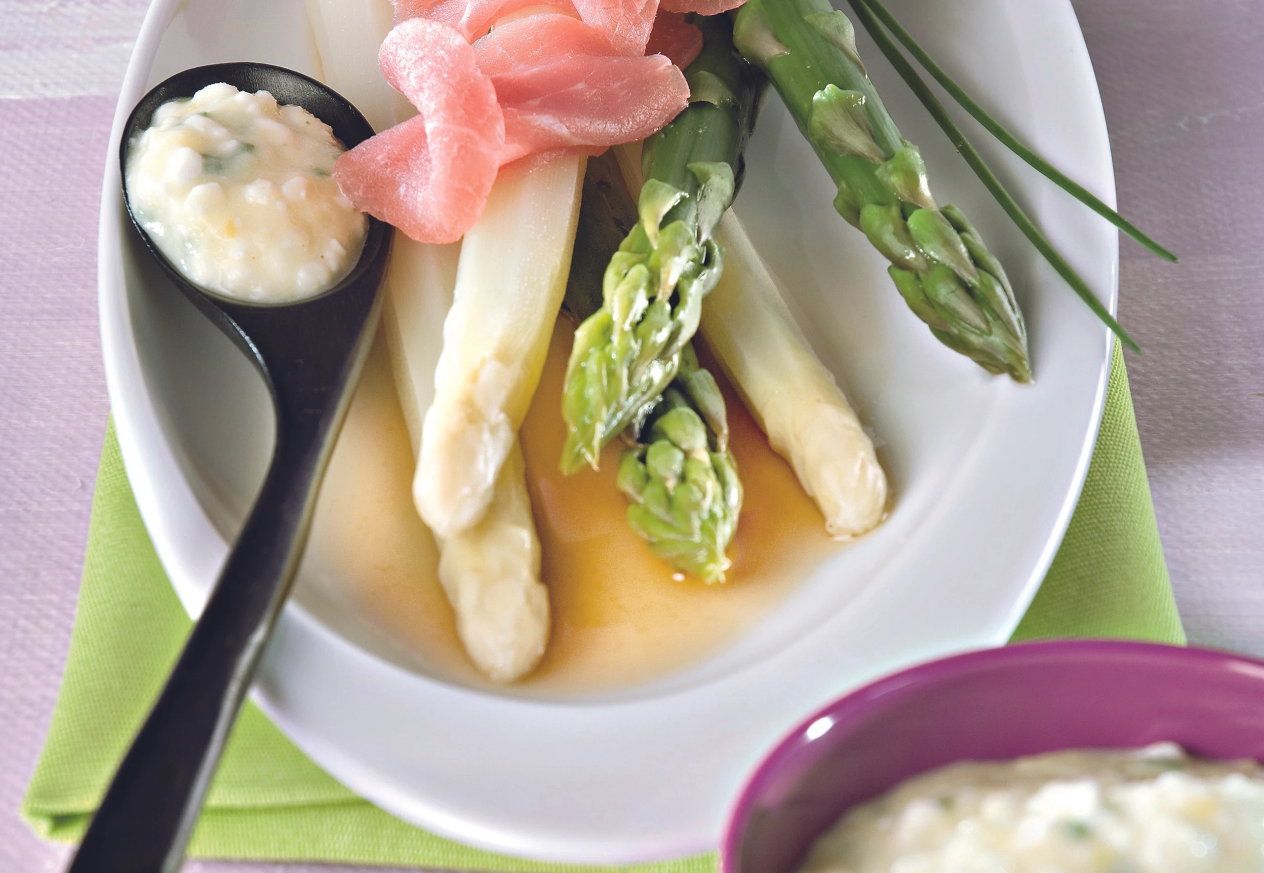 Spargel mit Lachsschinken und Kräuter-Dressing