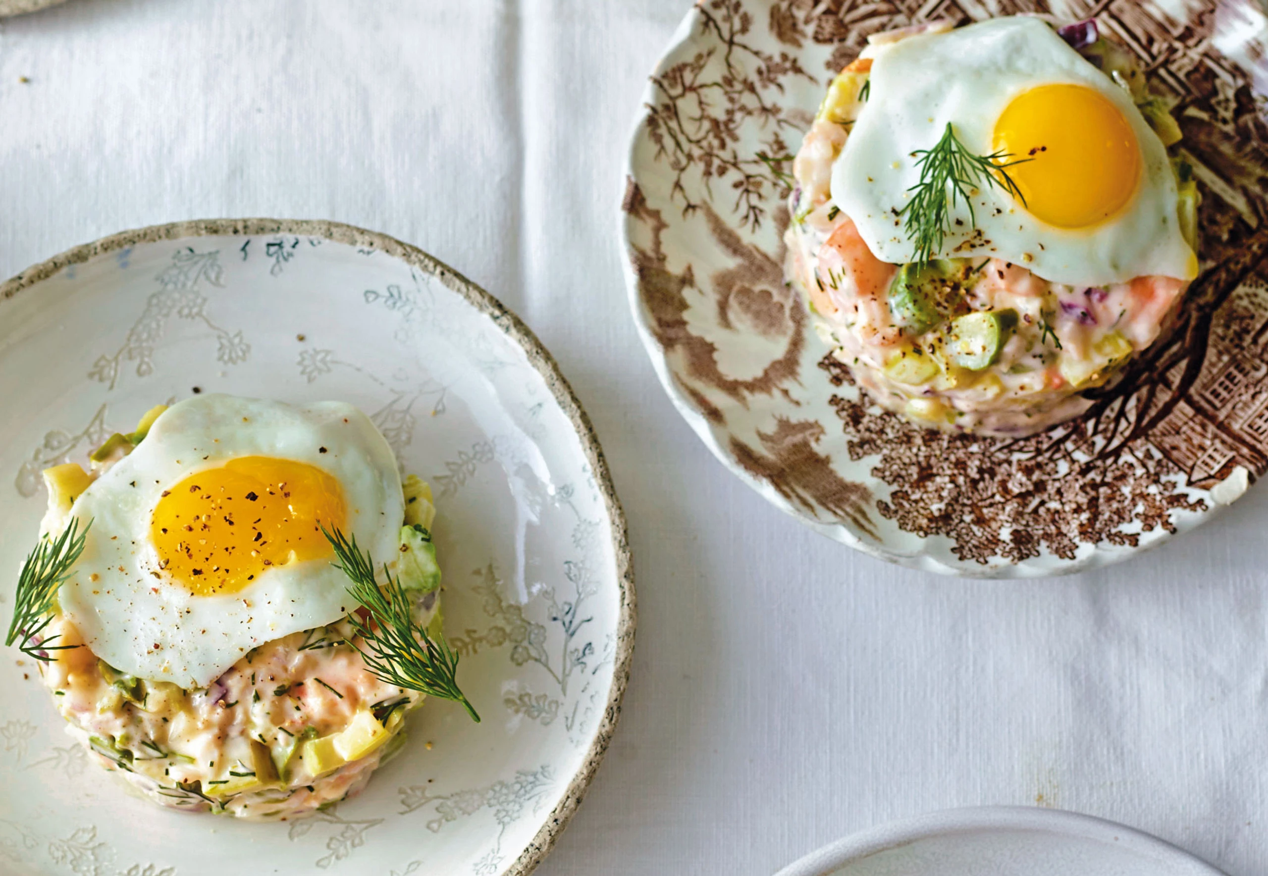 Tatar mit Spiegeleiern und Dillzweigen garnieren. Dazu passt Knäckebrot.