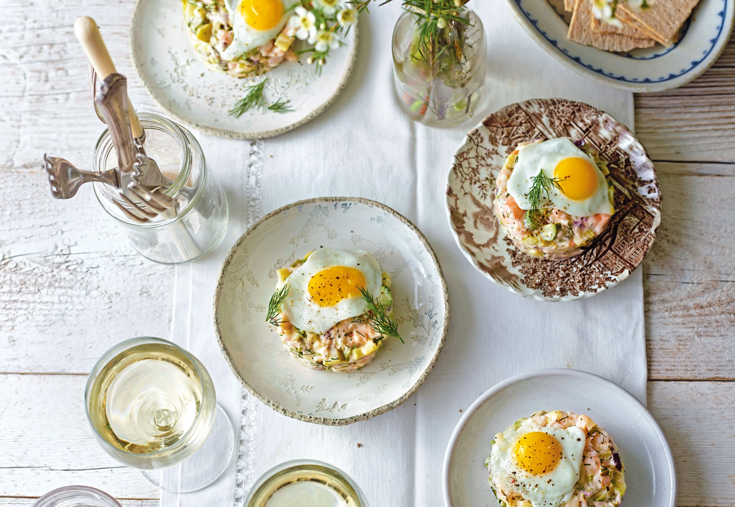 Spargel-Shrimps-Tatar mit Wachtelspiegelei