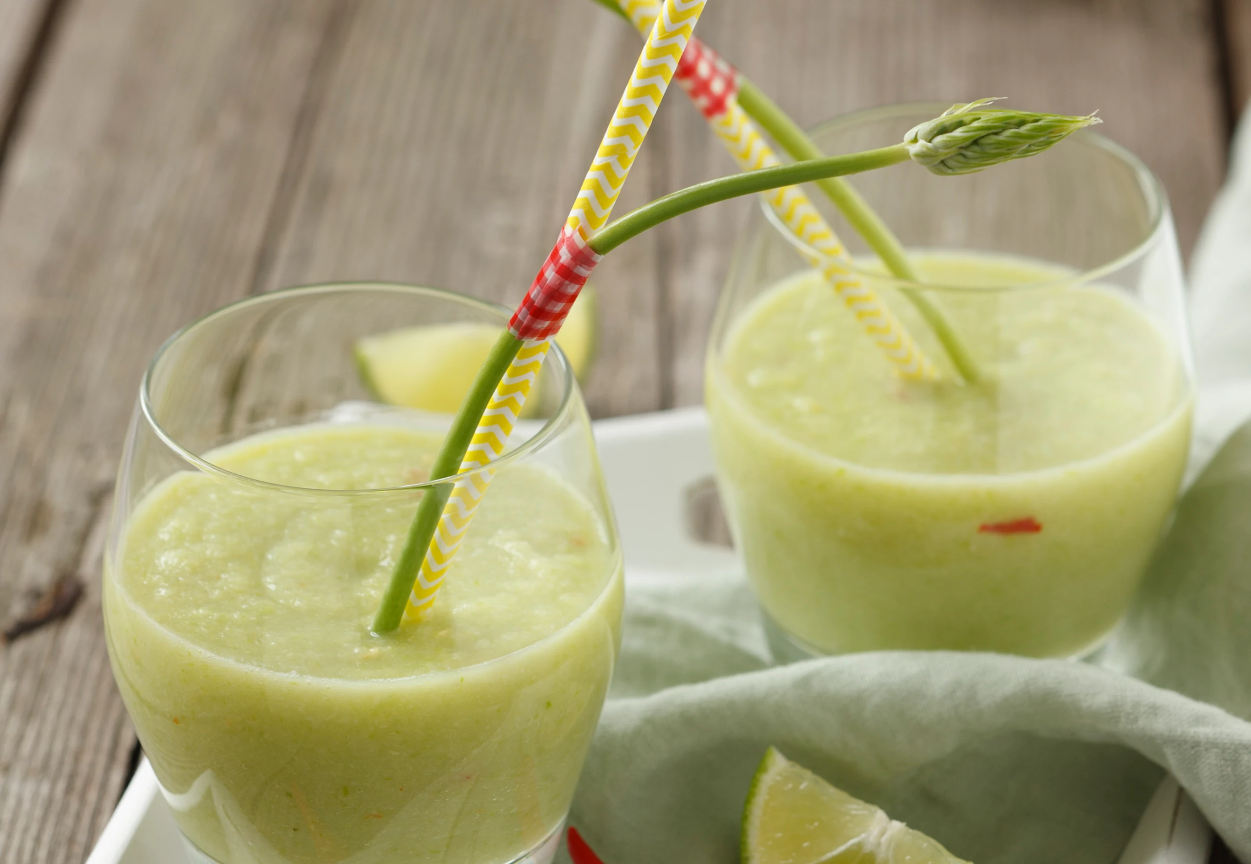 - Weißen Spargel schälen und in kleine Stücke schneiden. Spargel in Apfelsaft weichkochen und erkalten lassen. Grüne Spargelstücke, Chili, Limettensaft und Honig zugeben, fein mixen, mit Salz und Pfeffer würzen. Evtl. mit Thaispargel garnieren.