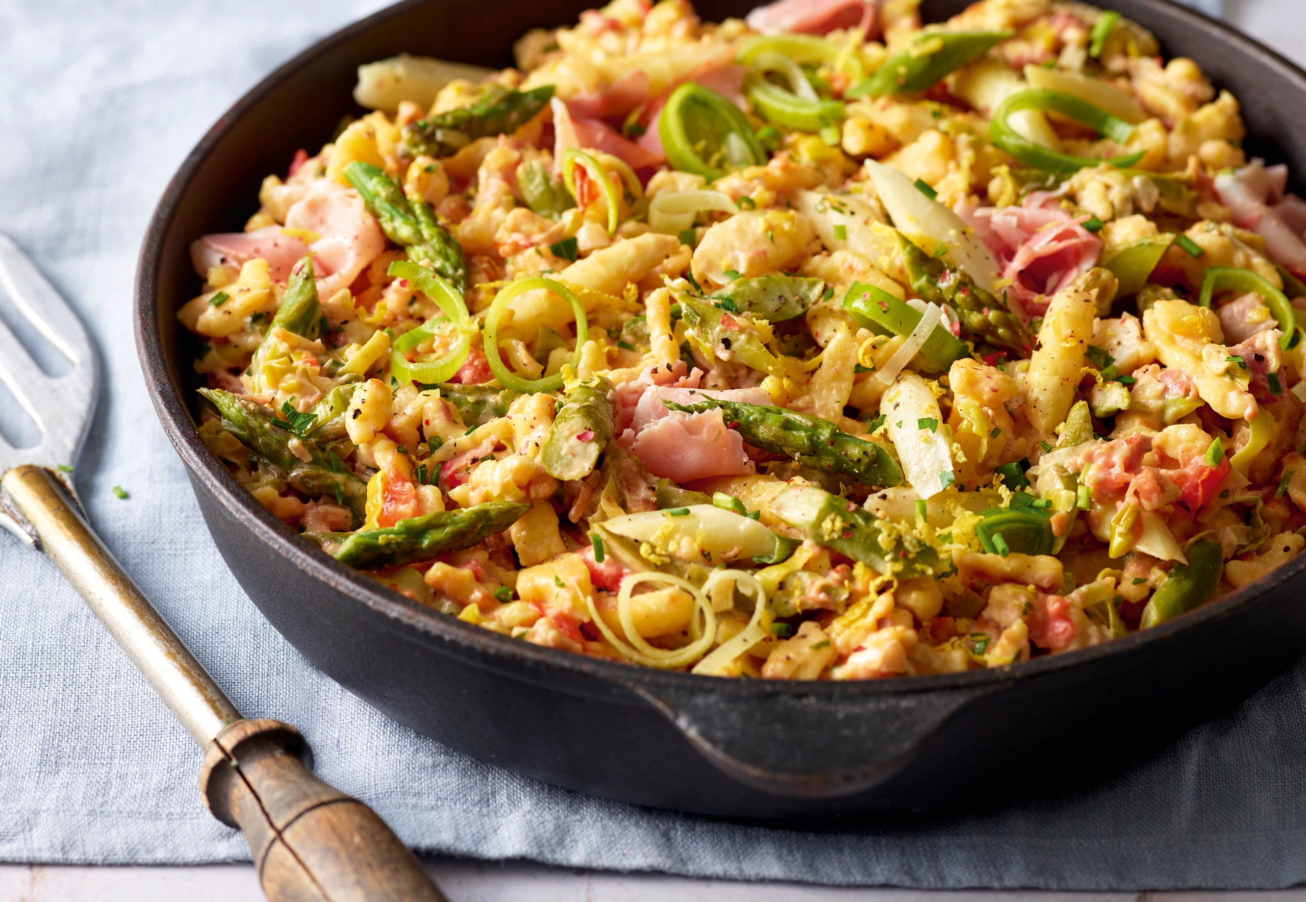 Spargel-Spätzlepfanne mit Schinken