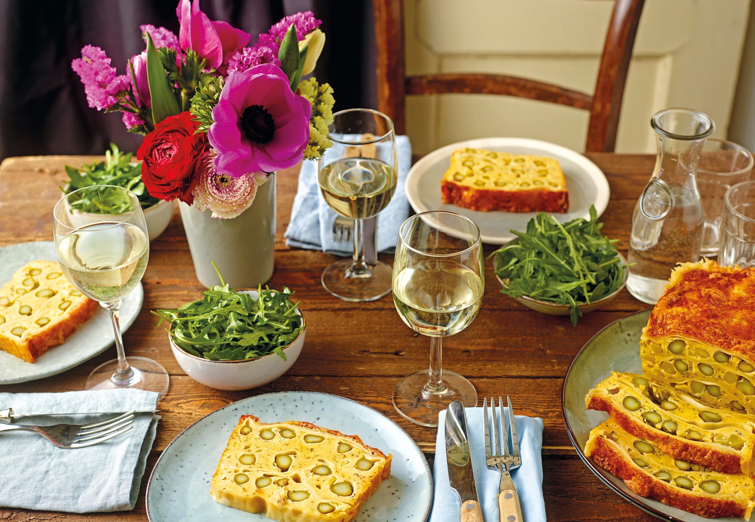 Rohr auf 180 °C Ober/Unterhitze vorheizen. Eine Kastenform (ca. 36 x 12 x 8 cm) mit Nussöl ausstreichen und den Boden mit 4 Lasagneblättern auslegen. Blätter mit einem Drittel der Fülle bestreichen und mit einem Drittel vom Spargel belegen. Spargel behutsam in die Fülle drücken und mit weiteren 4 Lasagneblättern belegen. Diesen Vorgang mit übriger Fülle, Spargel und restlichen Lasagneblättern wiederholen. Mit 3 Lasagneblättern abschließen.