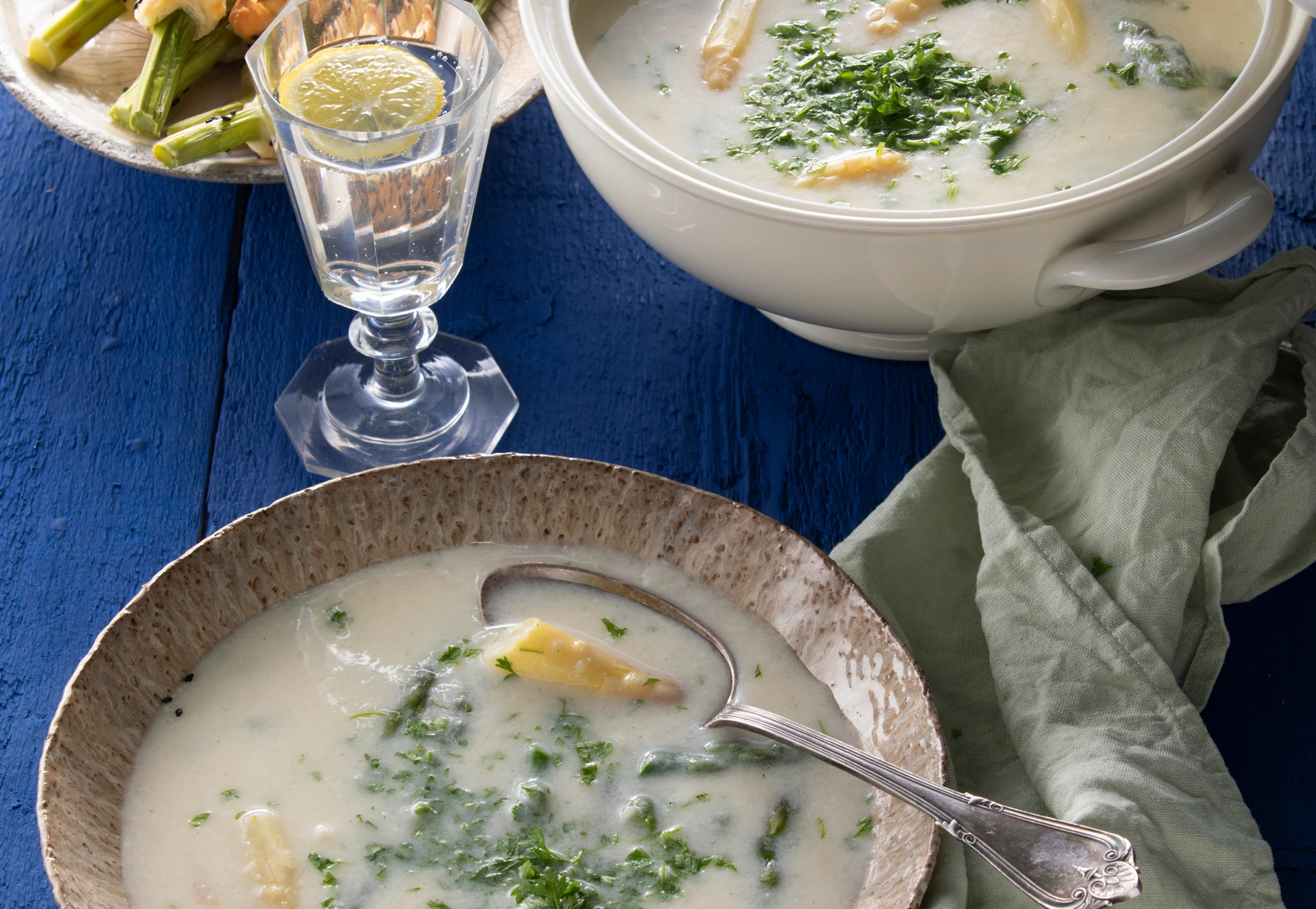 Spargelsuppe mit Kerbel und Sesamstangerln