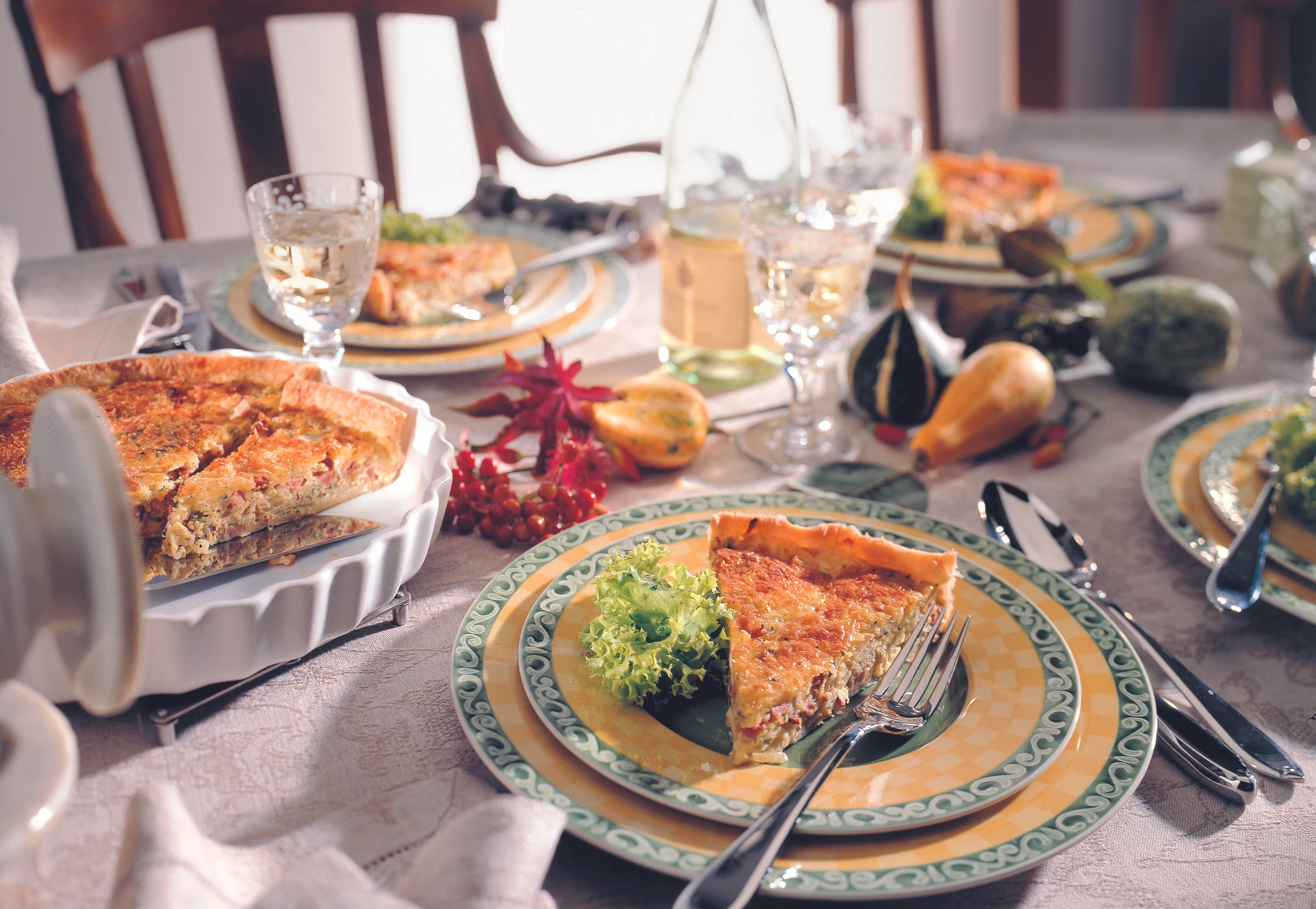Speck-Schinken-Zwiebelkuchen mit Blattsalat