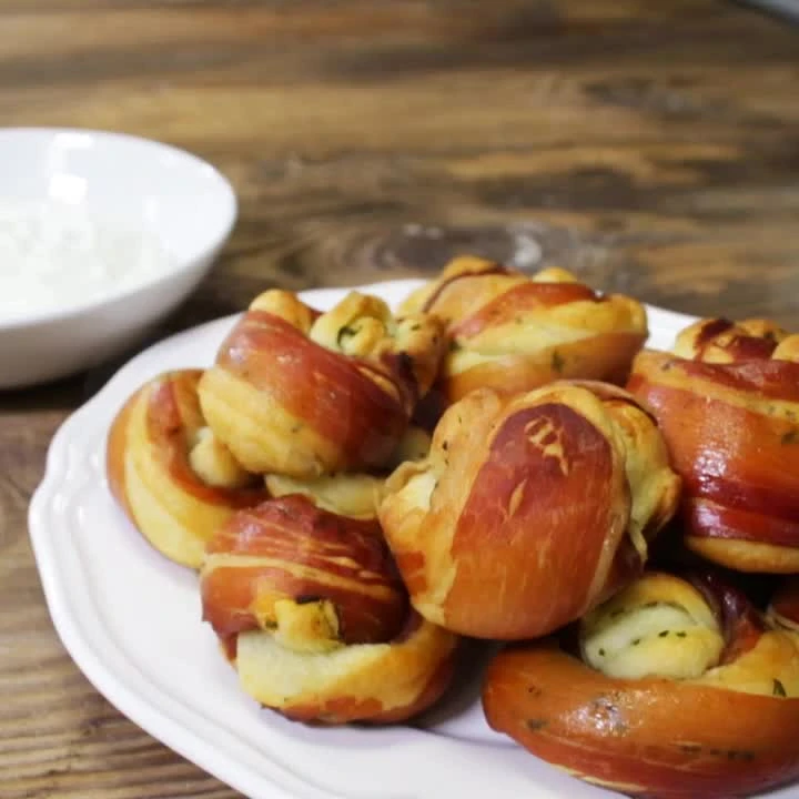 Speckknöpfe mit Kräuterdip