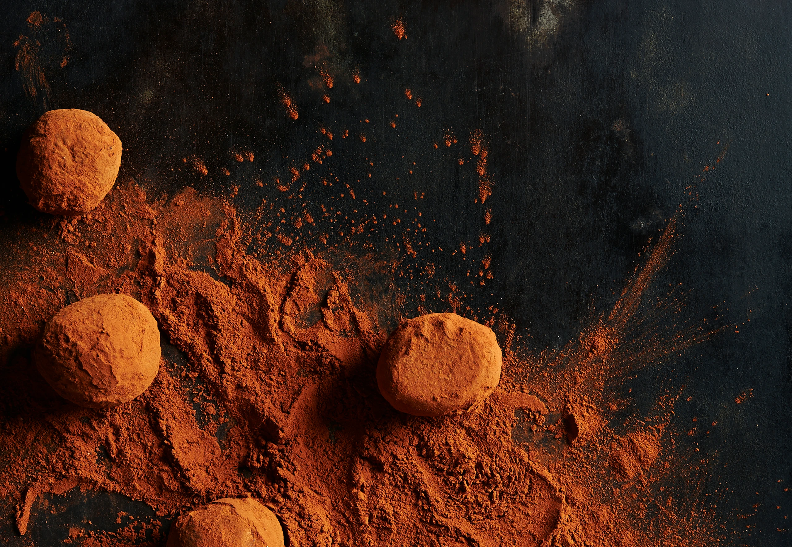 Canache zu Kugeln (je 13 g) rollen. Trüffel in Kakao wälzen.