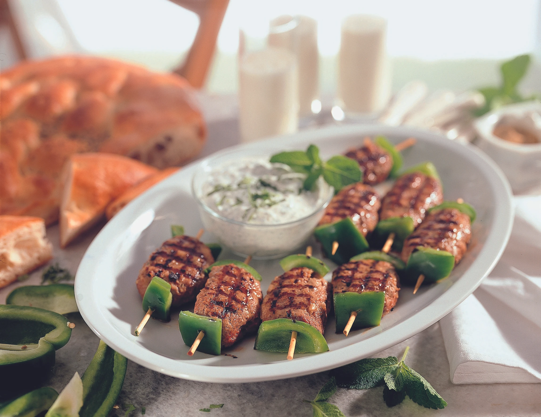 Spieße mit Lammfaschiertem und Joghurtsauce