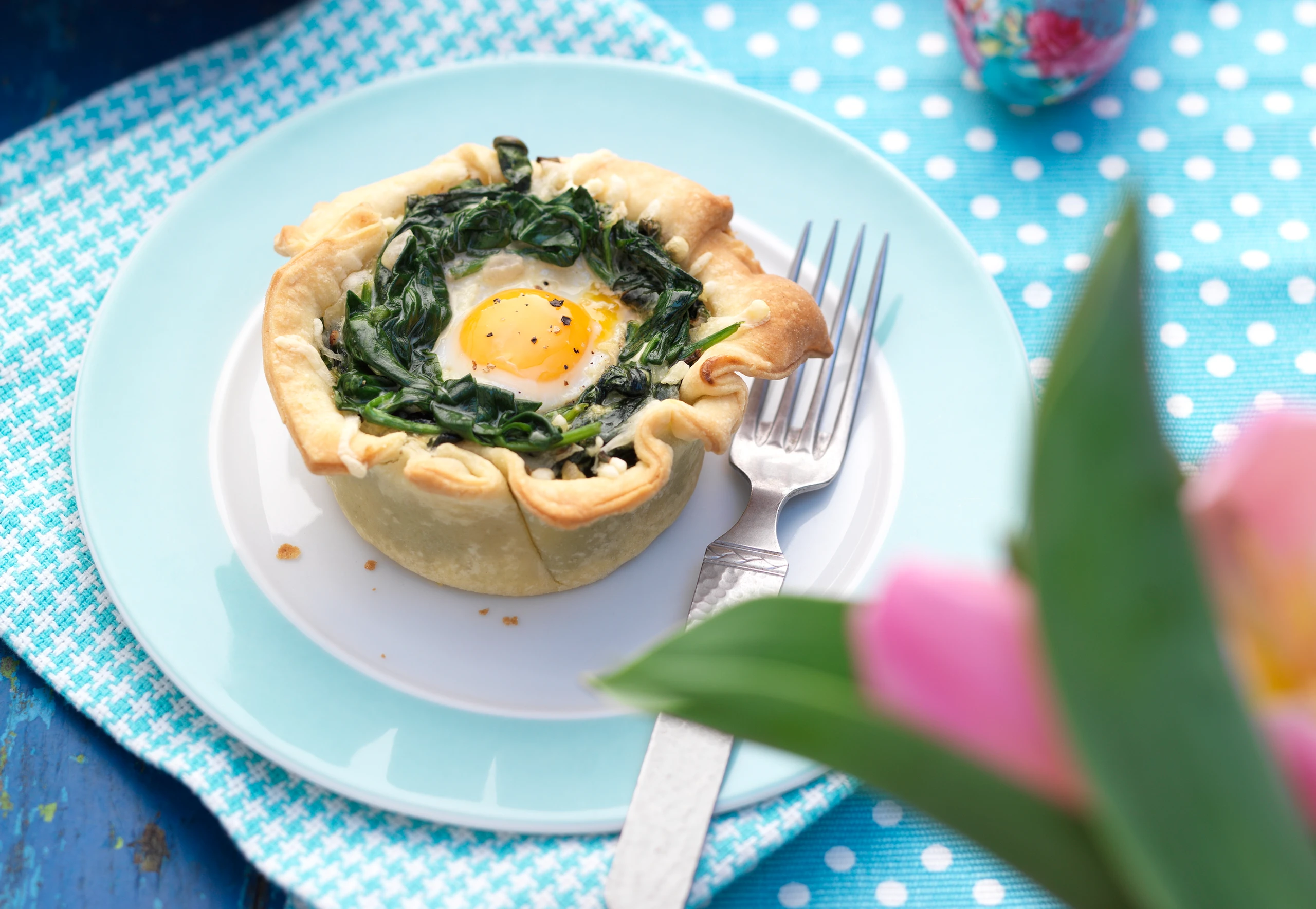 - Gegen Ende der Garzeit Wachteleier bei schwacher Hitze in wenig Öl braten. Pastetchen aus dem Rohr nehmen und mit den Spiegeleiern garniert servieren.