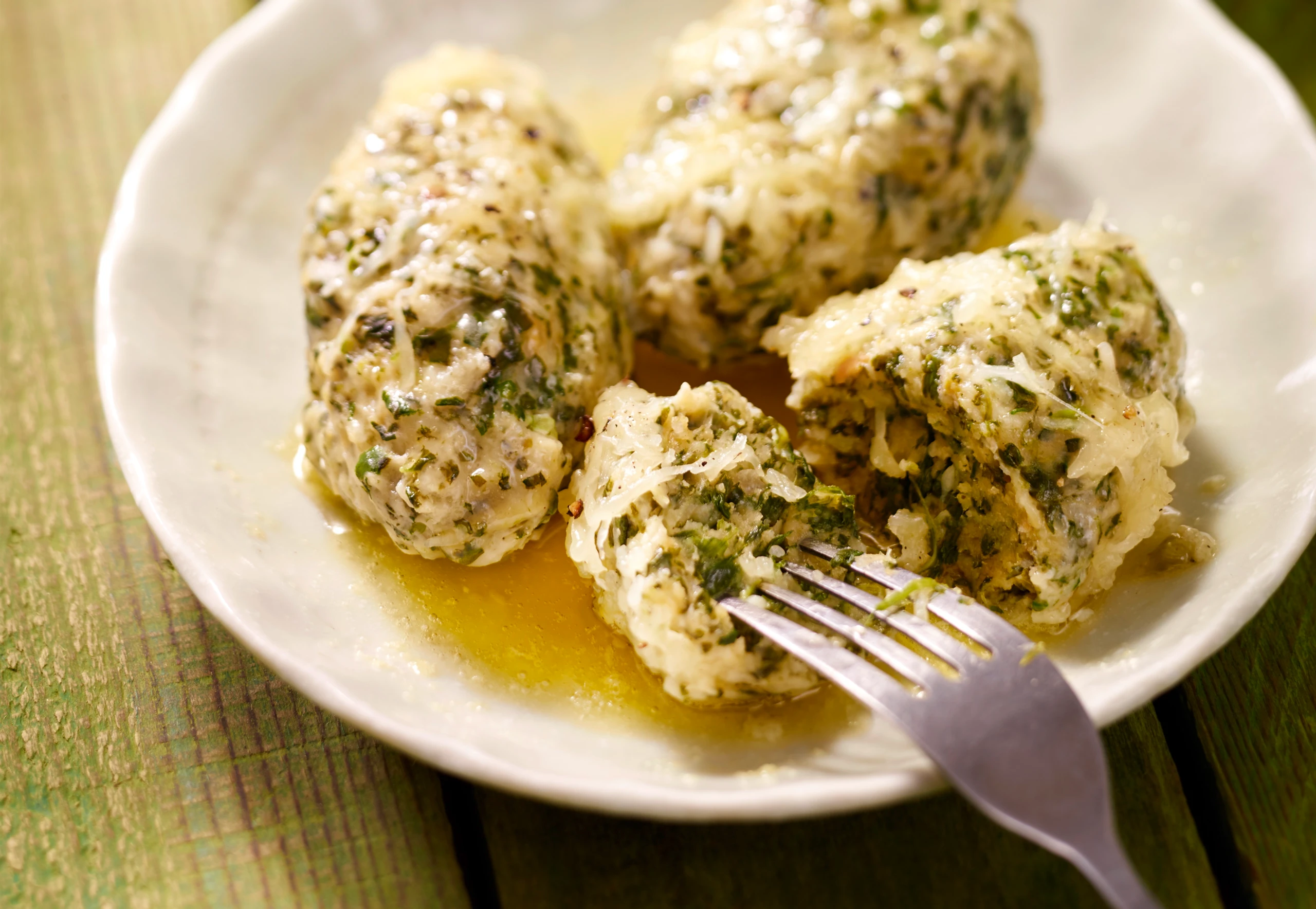 Mindestens 2 Liter Salzwasser aufkochen. Aus der Spinatmasse 12 Nockerln ausstechen und ins kochende Wasser legen. Hitze reduzieren und die Nockerln ca. 12 Minuten unter dem Siedepunkt gar ziehen lassen.