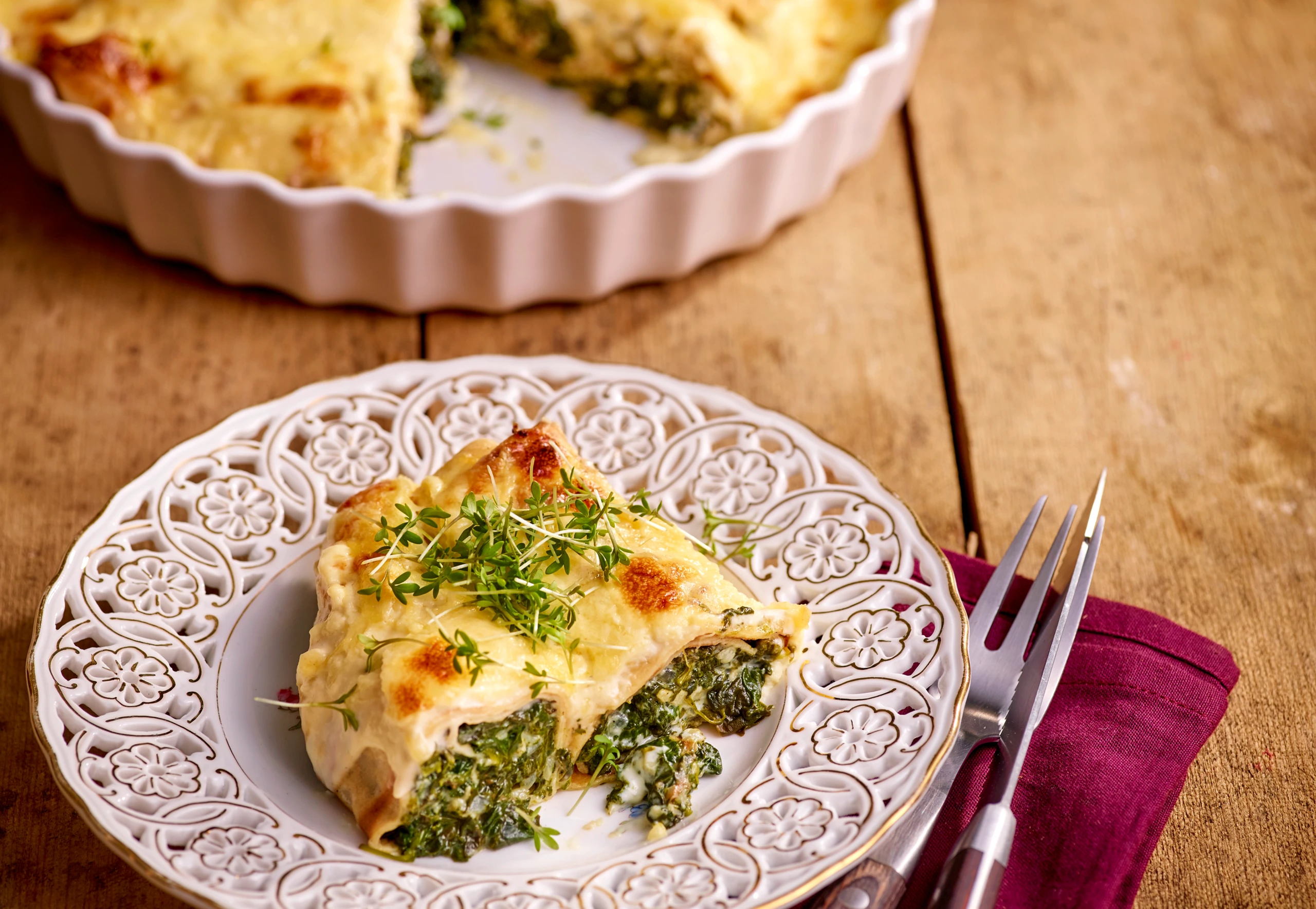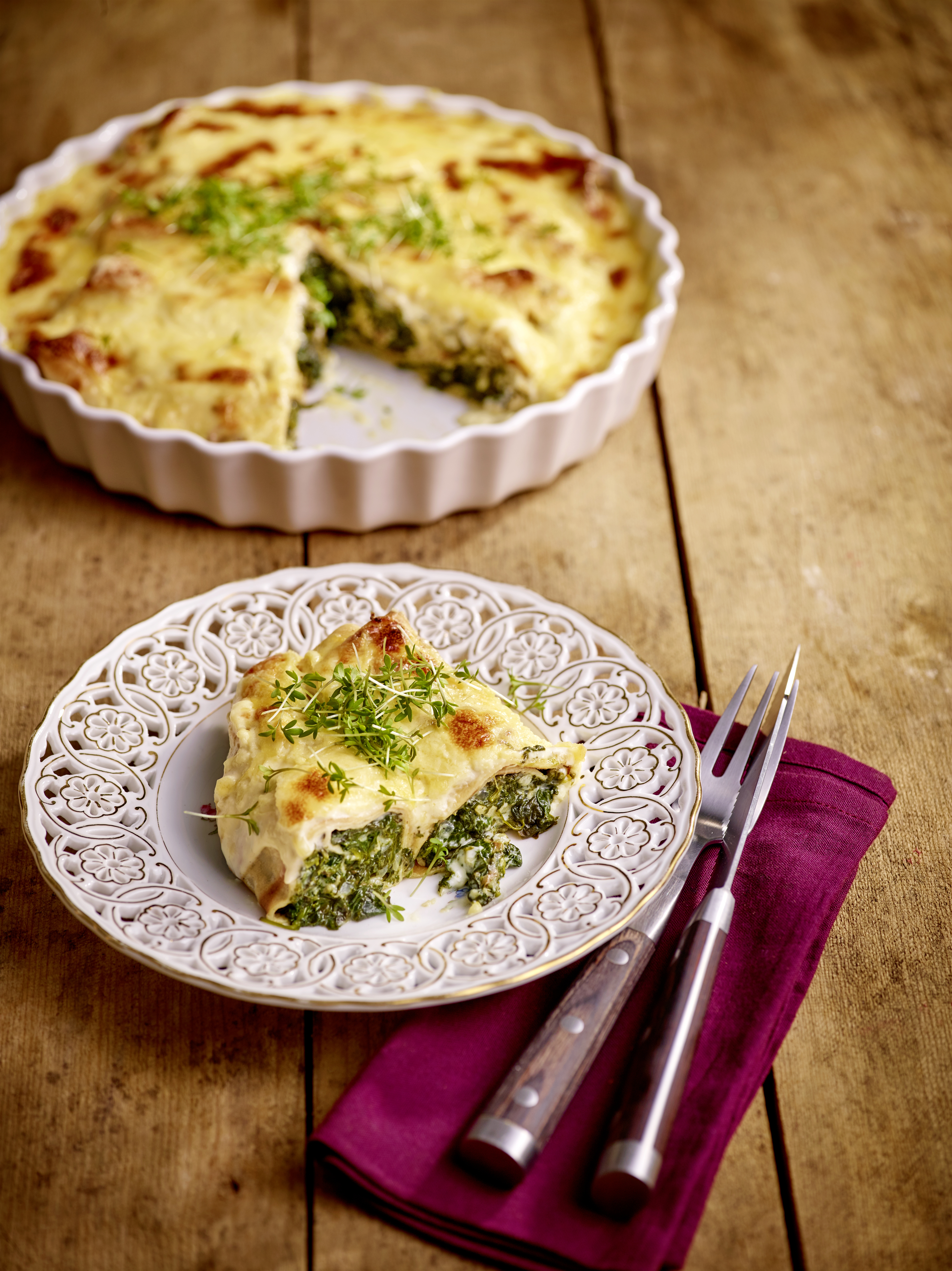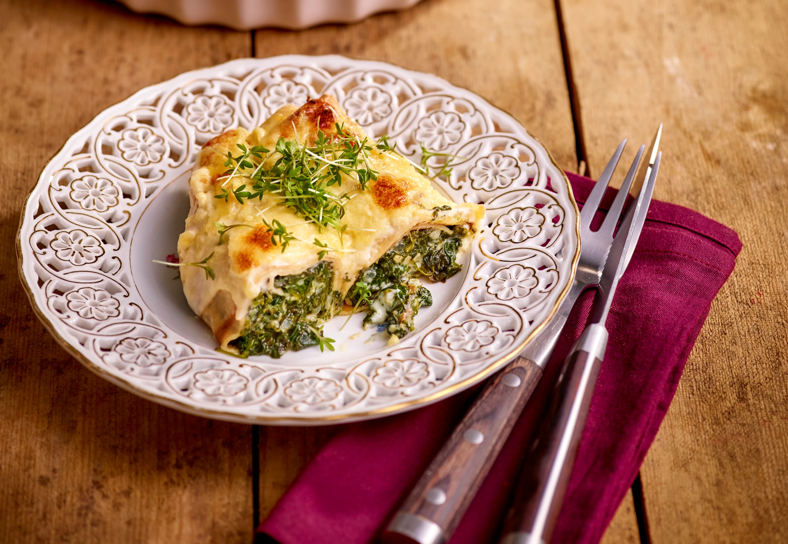 Spinatpalatschinken mit Frischkäse und Sauce Mornay