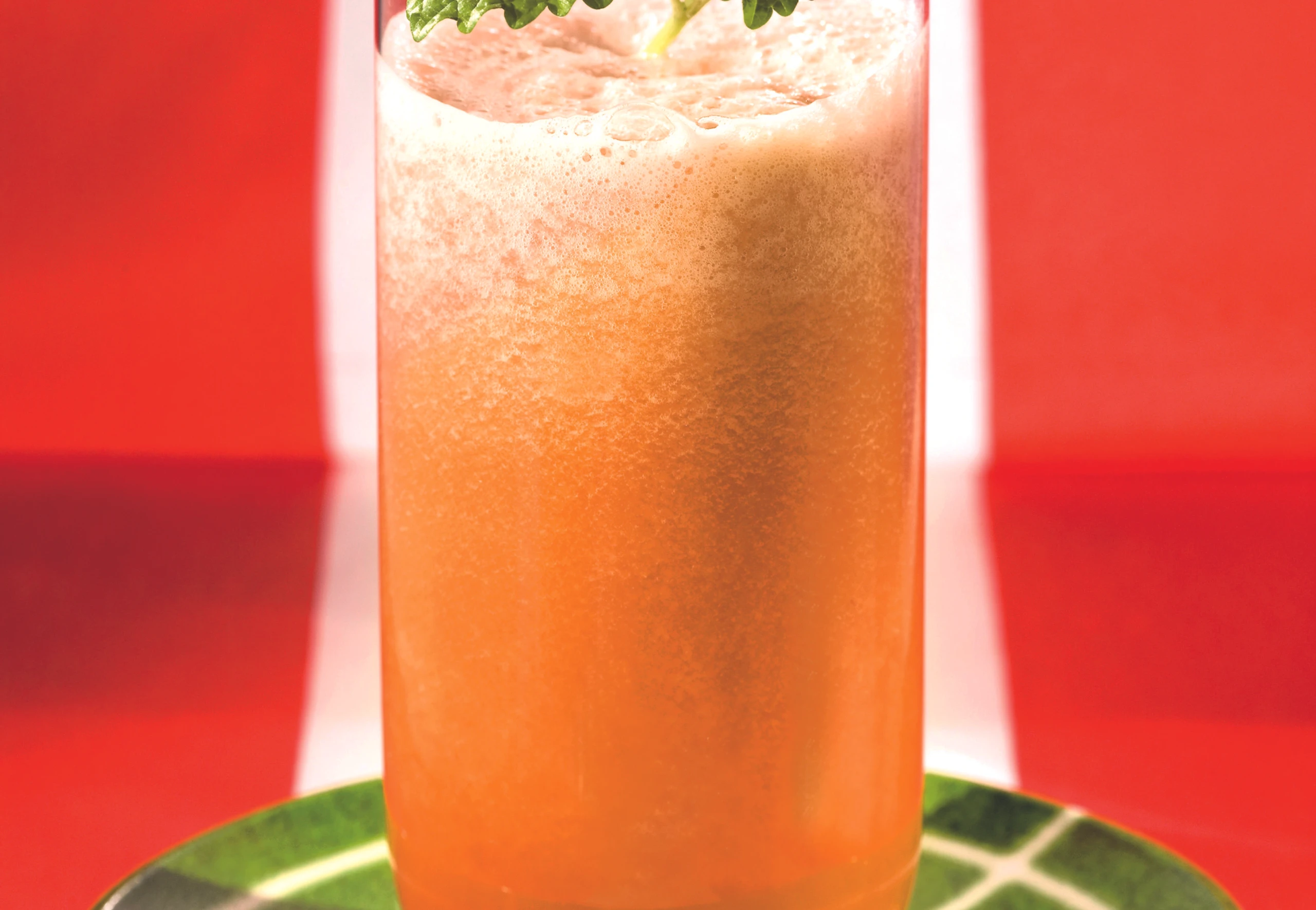 Tee abgießen und auskühlen lassen. Melonen in 2 cm große Würfel schneiden und mit dem Tee aufmixen. Mit Melisseblättchen dekorieren.