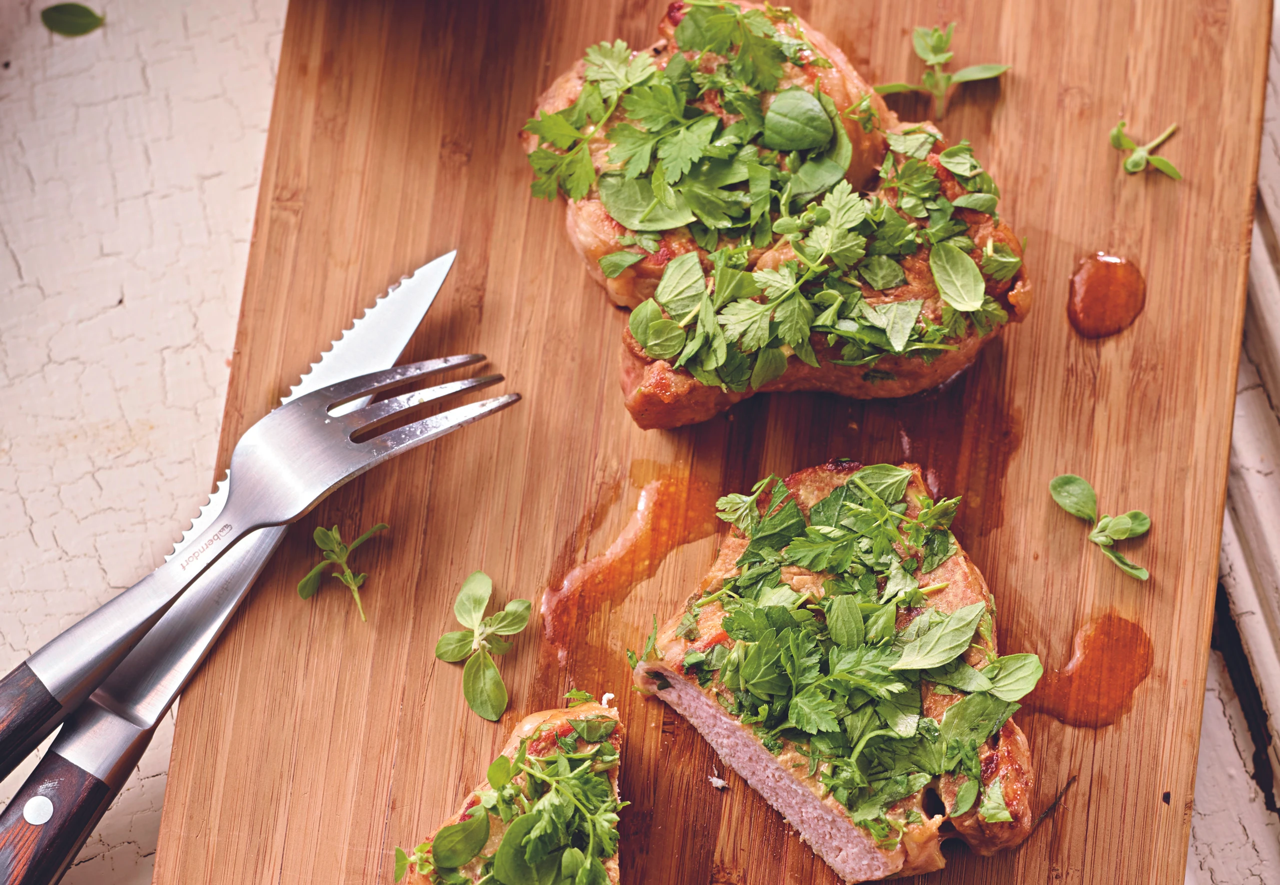 Gusto-Tipp: Fleisch nie direkt aus der Pfanne servieren. Es braucht Zeit zum Rasten, dabei entspannen sich die Fasern und der Saft verteilt sich gleichmäßig im Fleisch.