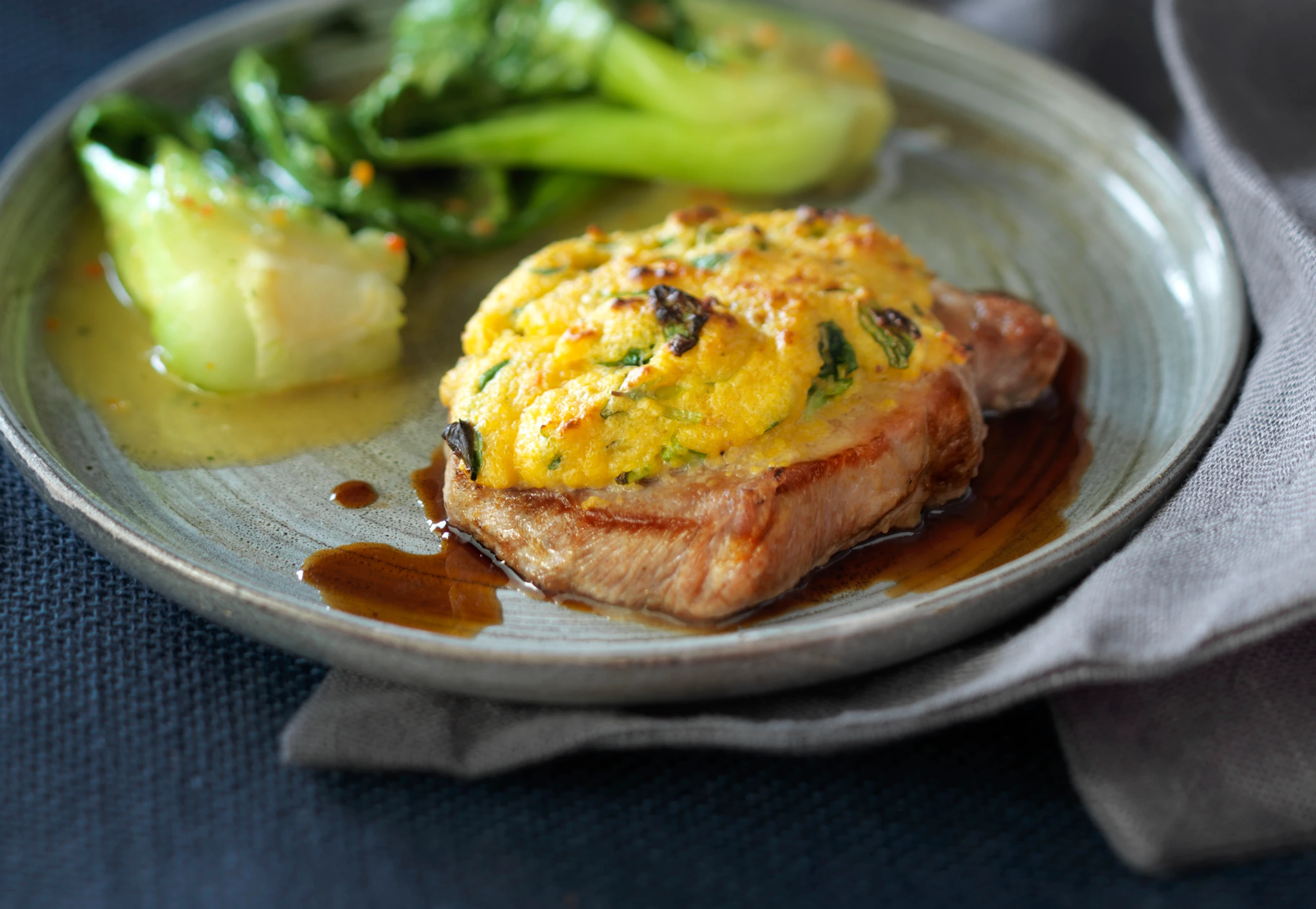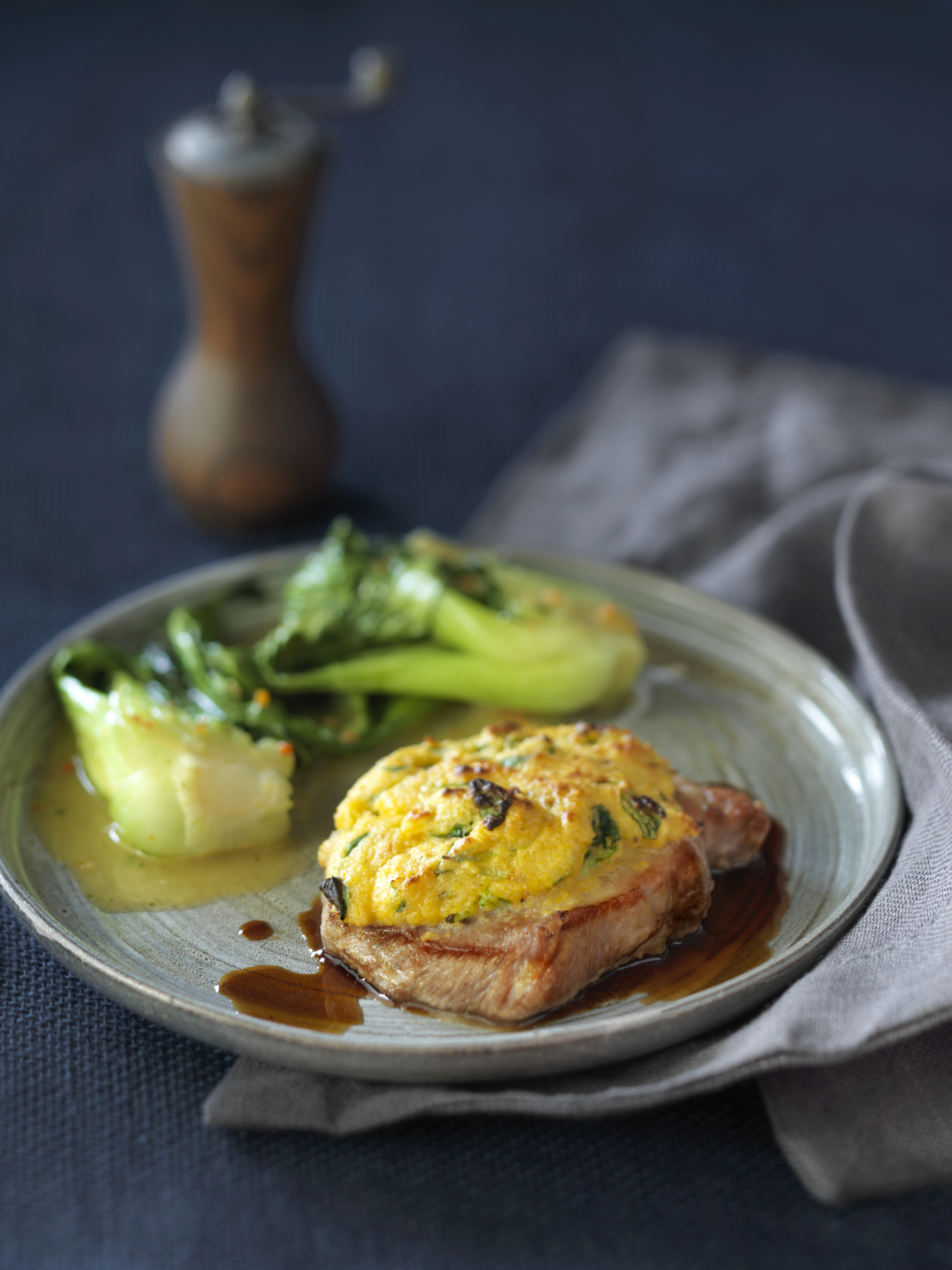 Steaks mit Polentakruste und Pak Choi