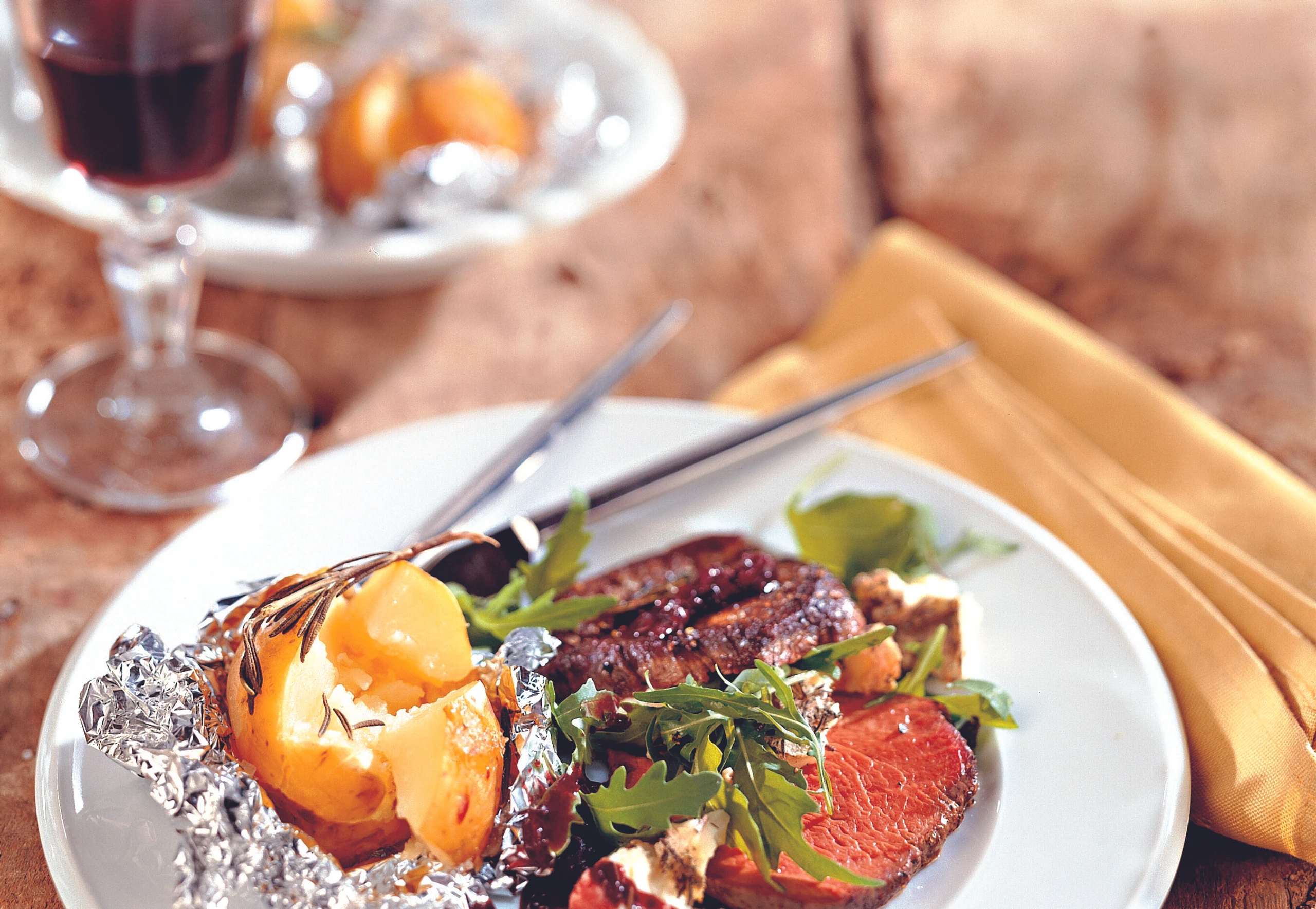 Steaks mit Rucola-Käsefülle und Grappa-Erdäpfeln