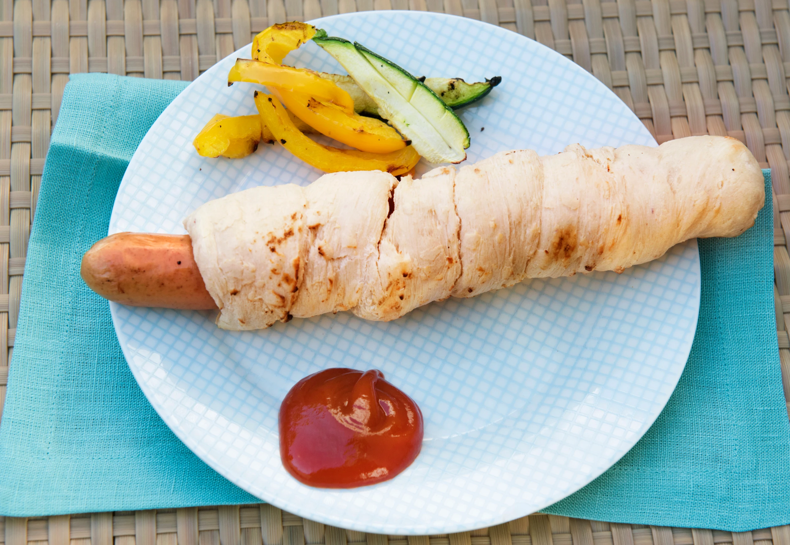 - Brot vom Stock ziehen, Würstel und Grillgemüse in das Brot stecken und evtl. mit Ketchup servieren.