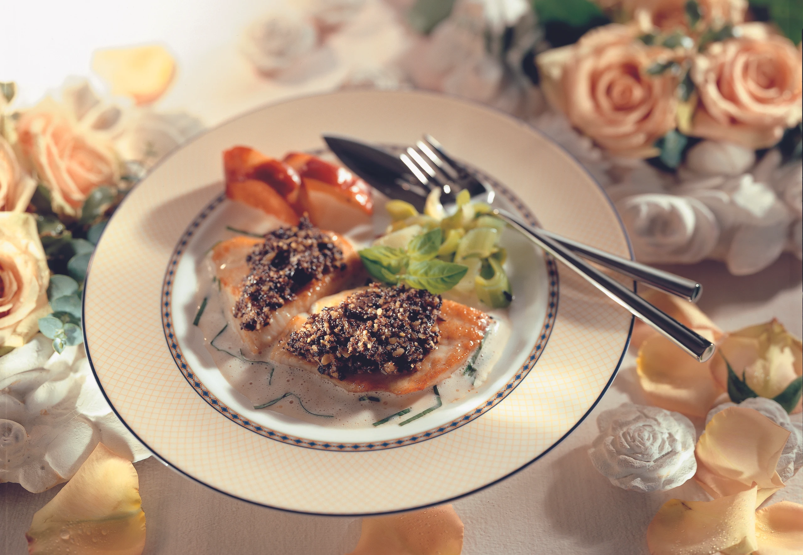 Steinbutt mit Olivenkruste und Thunfischsauce