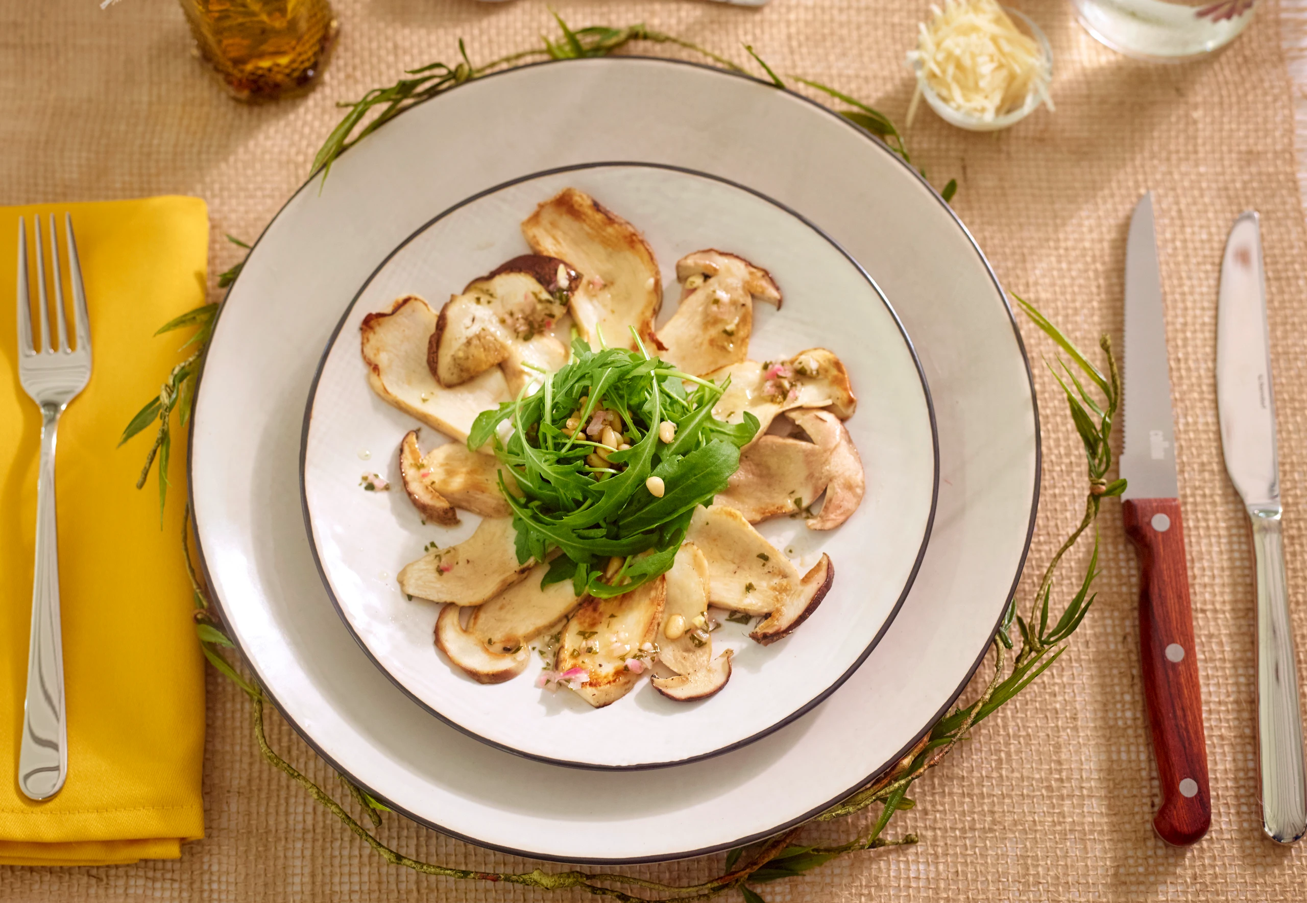 Steinpilze mit Estragonmarinade, Rucola und Pignoli