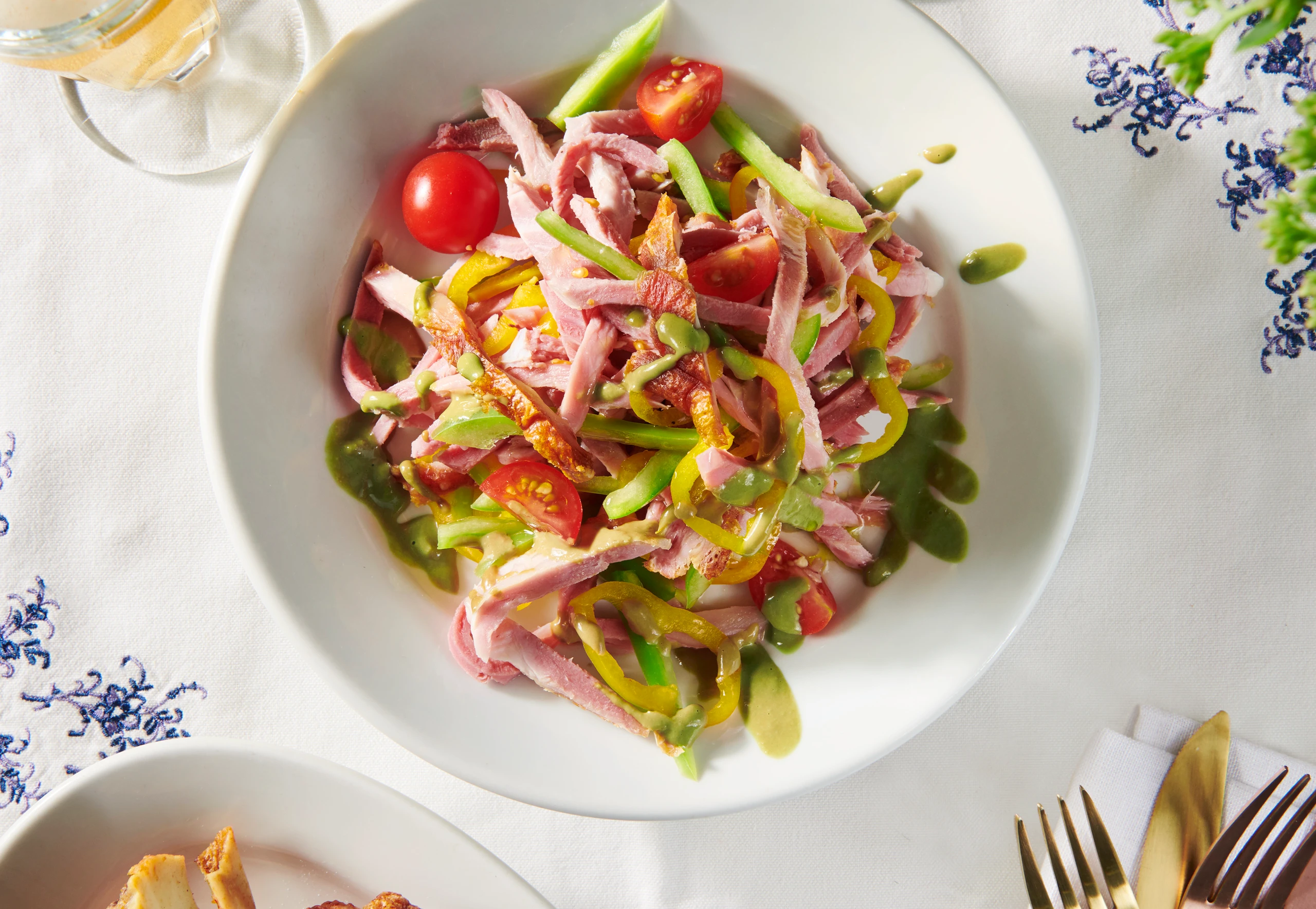 Stelzensalat mit Erdäpfeln und Kernöl-Mayonnaise
