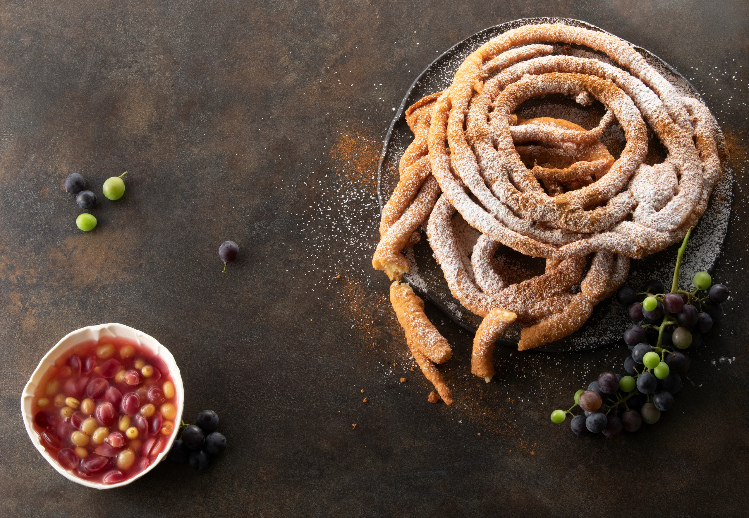 In einer hohen Pfanne 3 Finger hoch Öl erhitzen. Teig in einen Dressiersack mit Lochtülle (Ø 1 cm) füllen und spiralförmig in das heiße Öl dressieren.