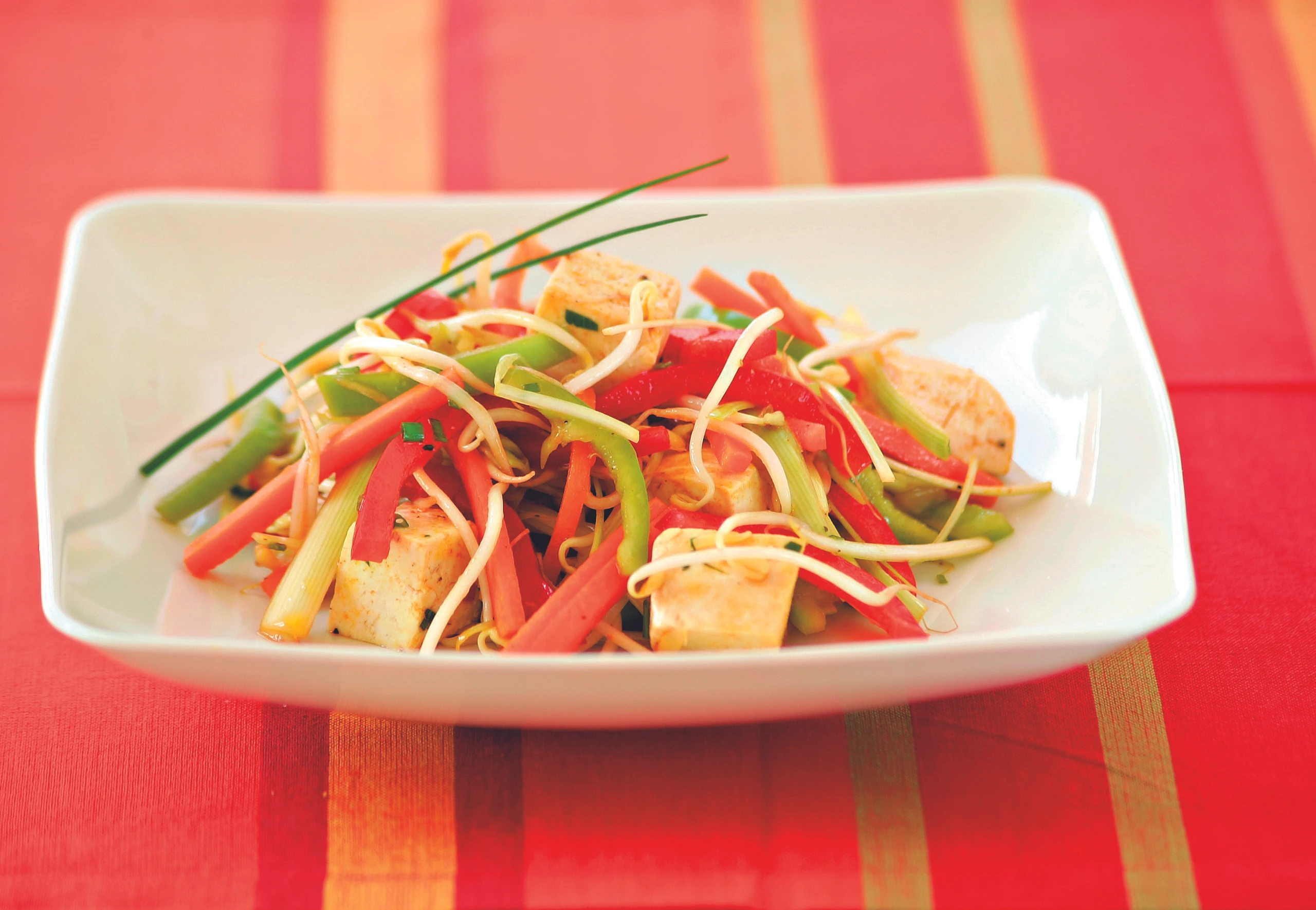 Asiatisches Streifengemüse mit Tofu und Sesamöl-Marinade