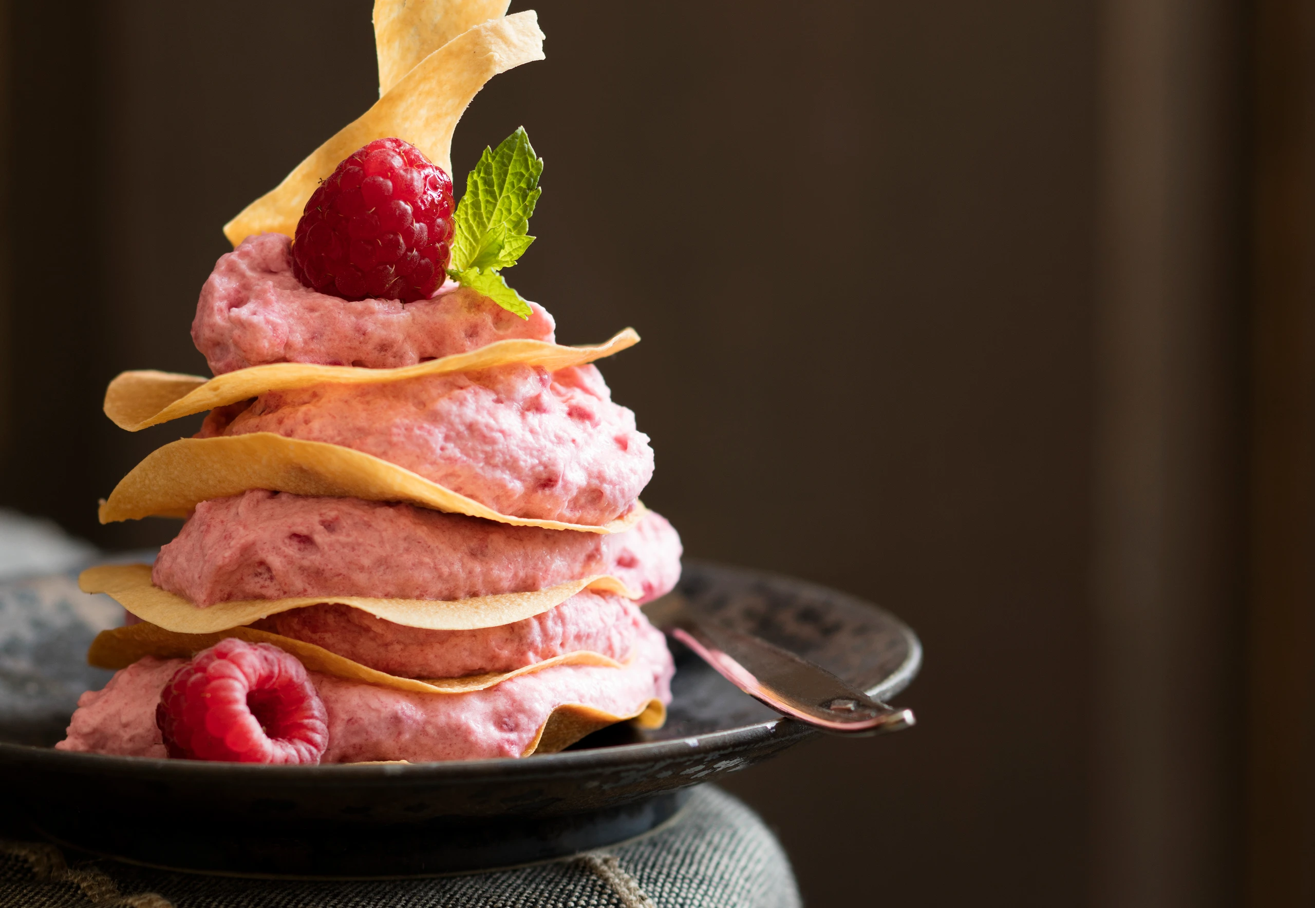 Strudelblätter mit Himbeercreme