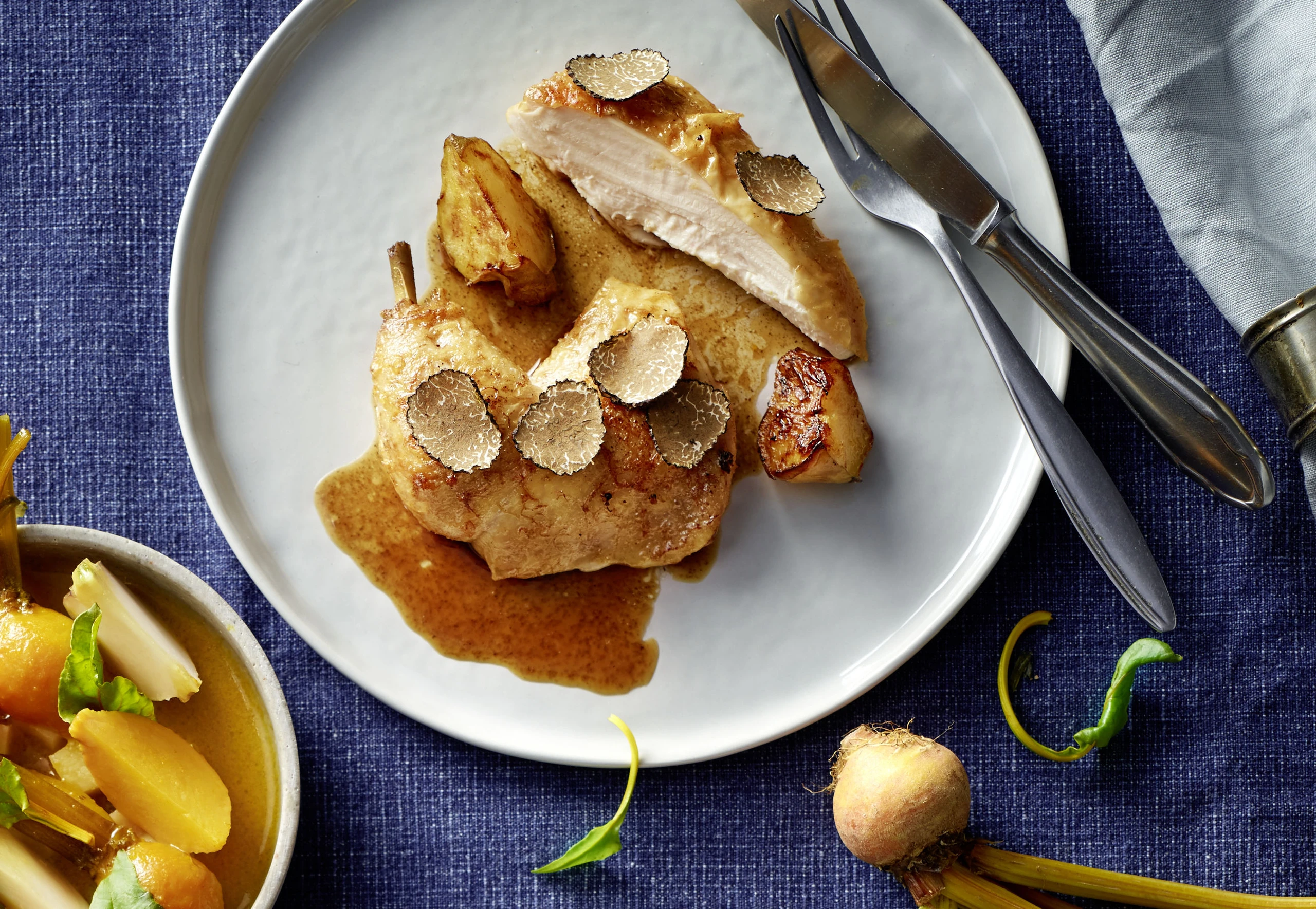 Stubenküken mit Rübengemüse und Trüffeln