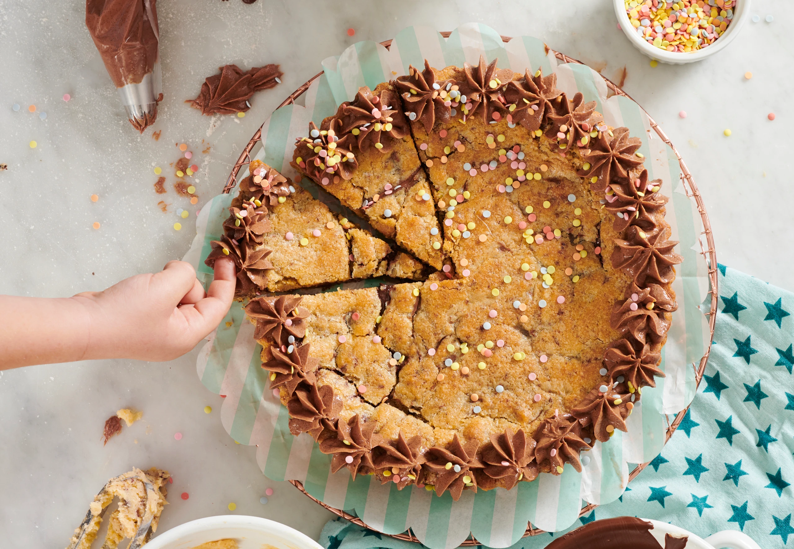 Herausnehmen und auskühlen lassen. Keks-Pizza aus der Form nehmen.