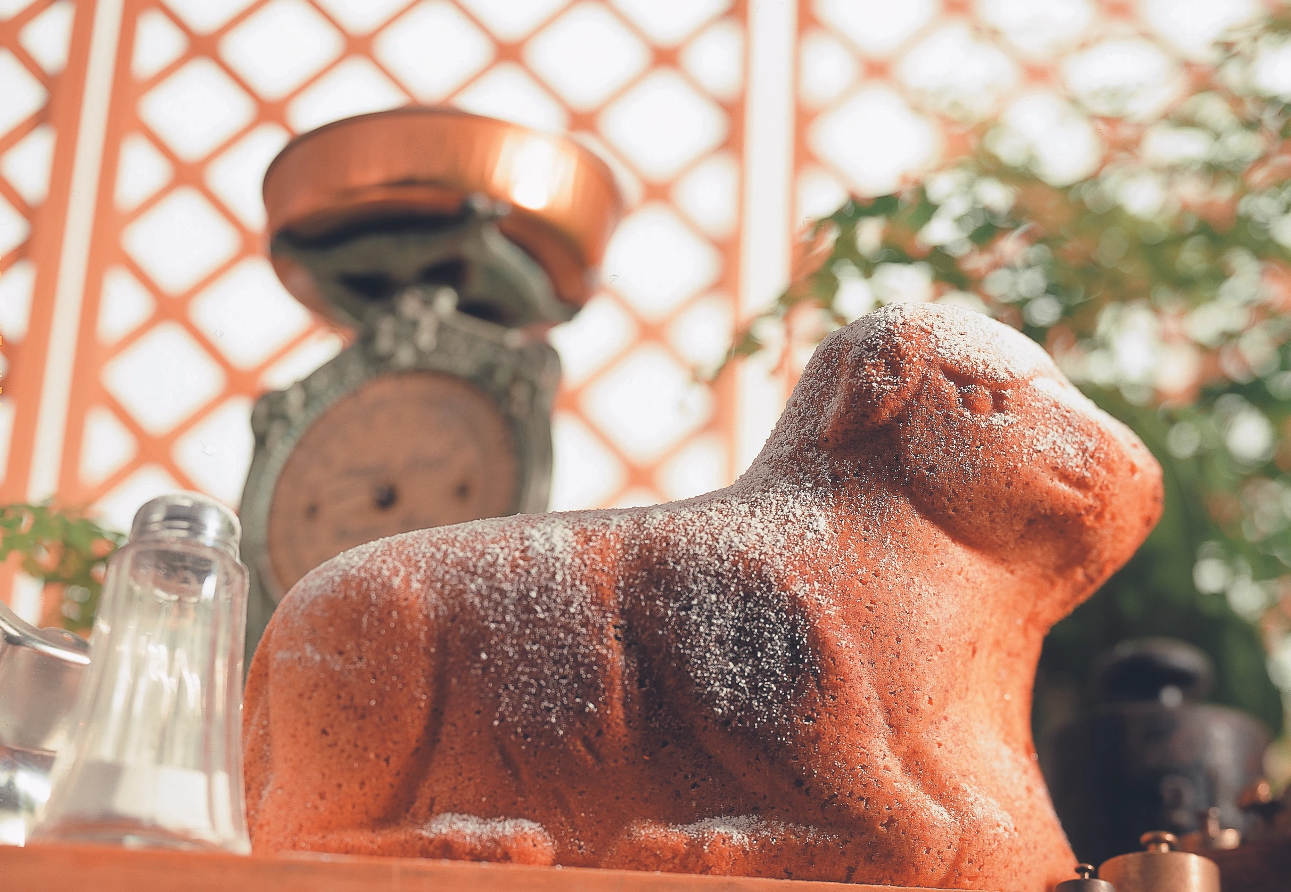 Lamm aus dem Rohr nehmen und in der Form auskühlen lassen. Lamm behutsam aus der Form stürzen und mit Staubzucker bestreut servieren.