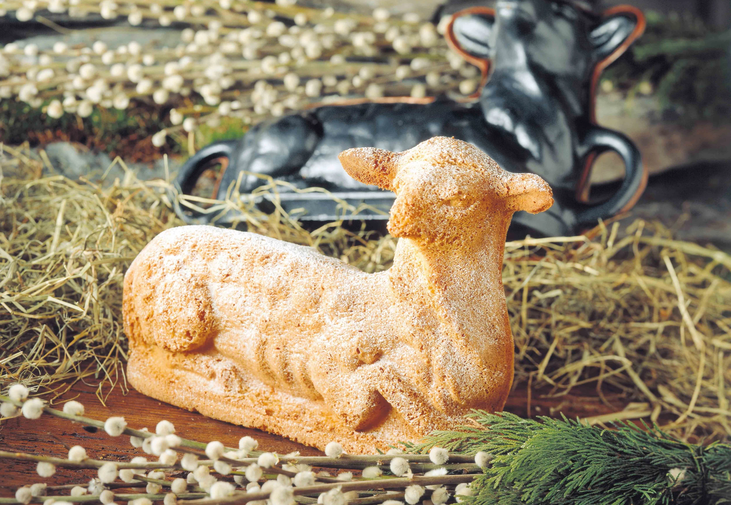 Lamm aus dem Rohr nehmen und ca. 10 Minuten abkühlen lassen. Form öffnen, das Lamm behutsam herausheben und auskühlen lassen. Überstehende Teigränder mit einem kleinen Messer entfernen. Lamm vor dem Anrichten mit Staubzucker bestreuen.