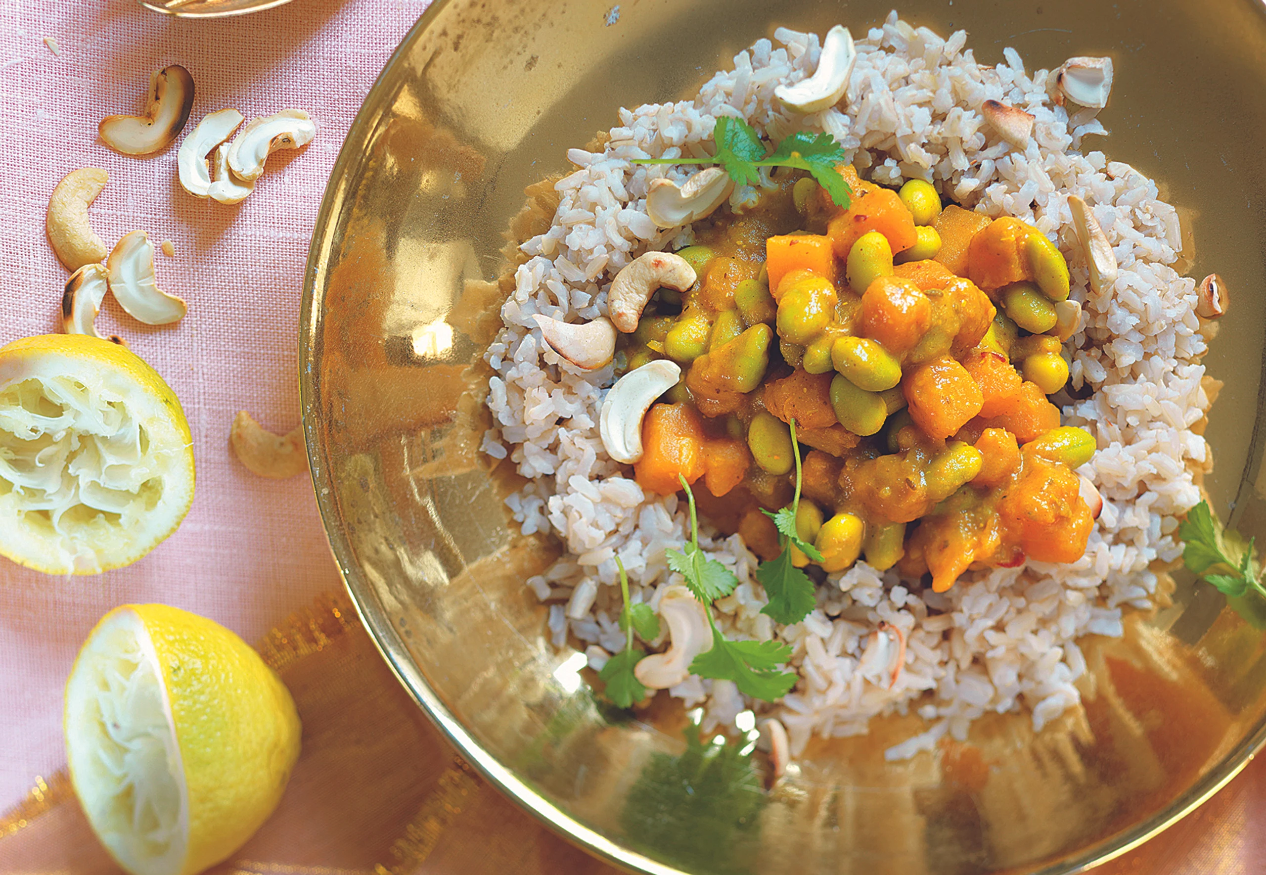 Süßkartoffel-Curry mit Cashew-Reis
