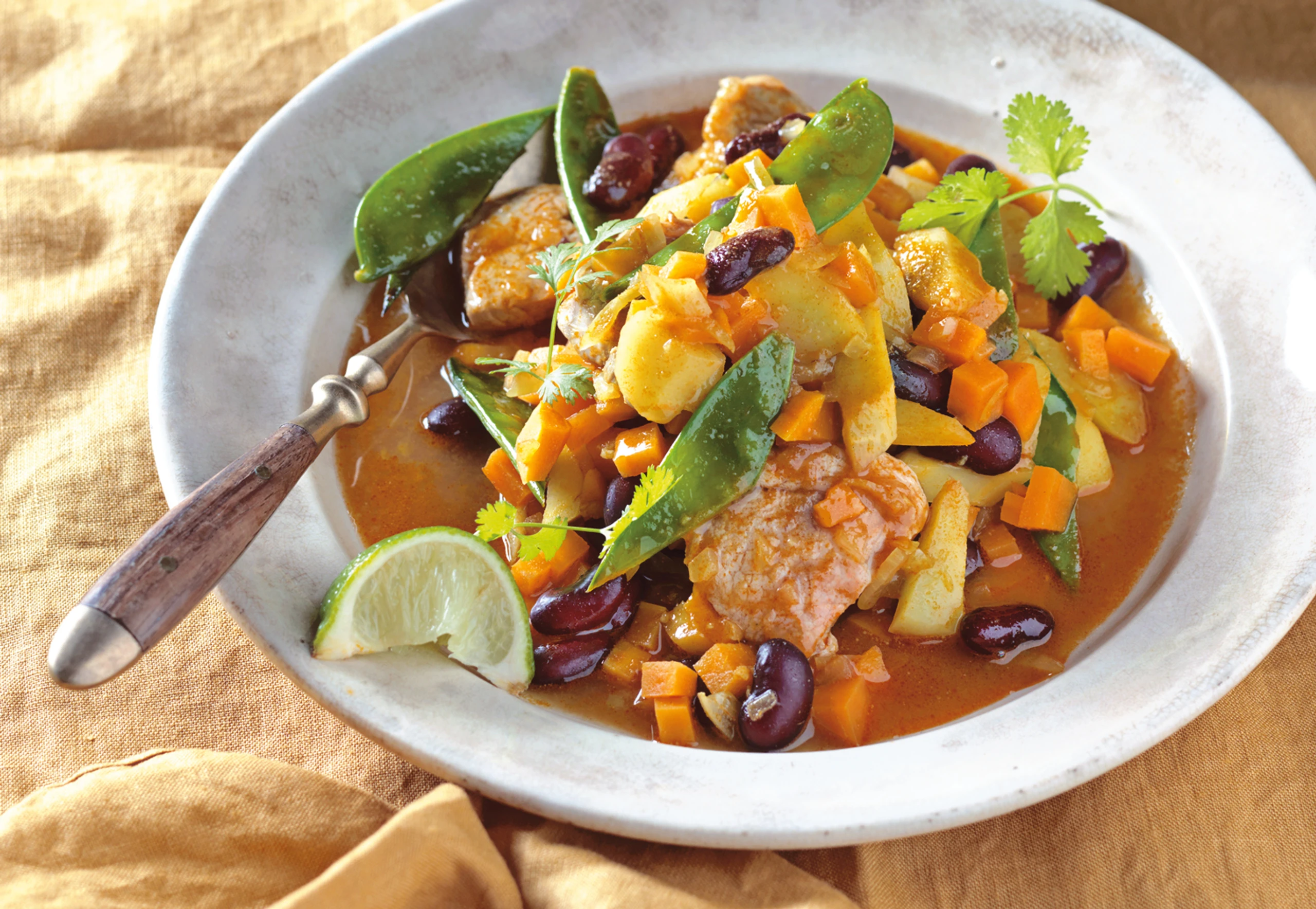 Süßkartoffel-Curryeintopf mit Schweinsfilet und Koriander
