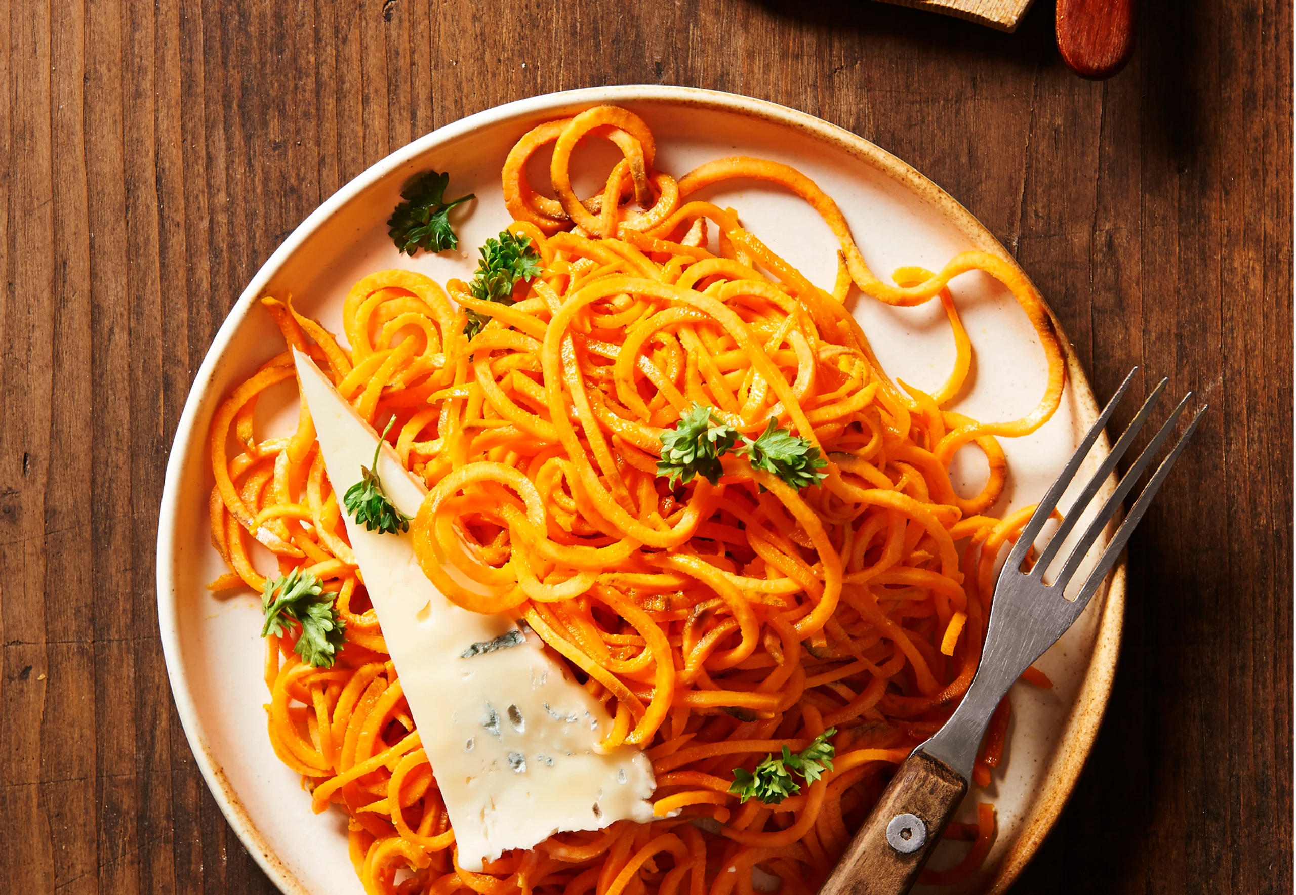 Süßkartoffel-Spaghetti mit brauner Butter und Gorgonzola