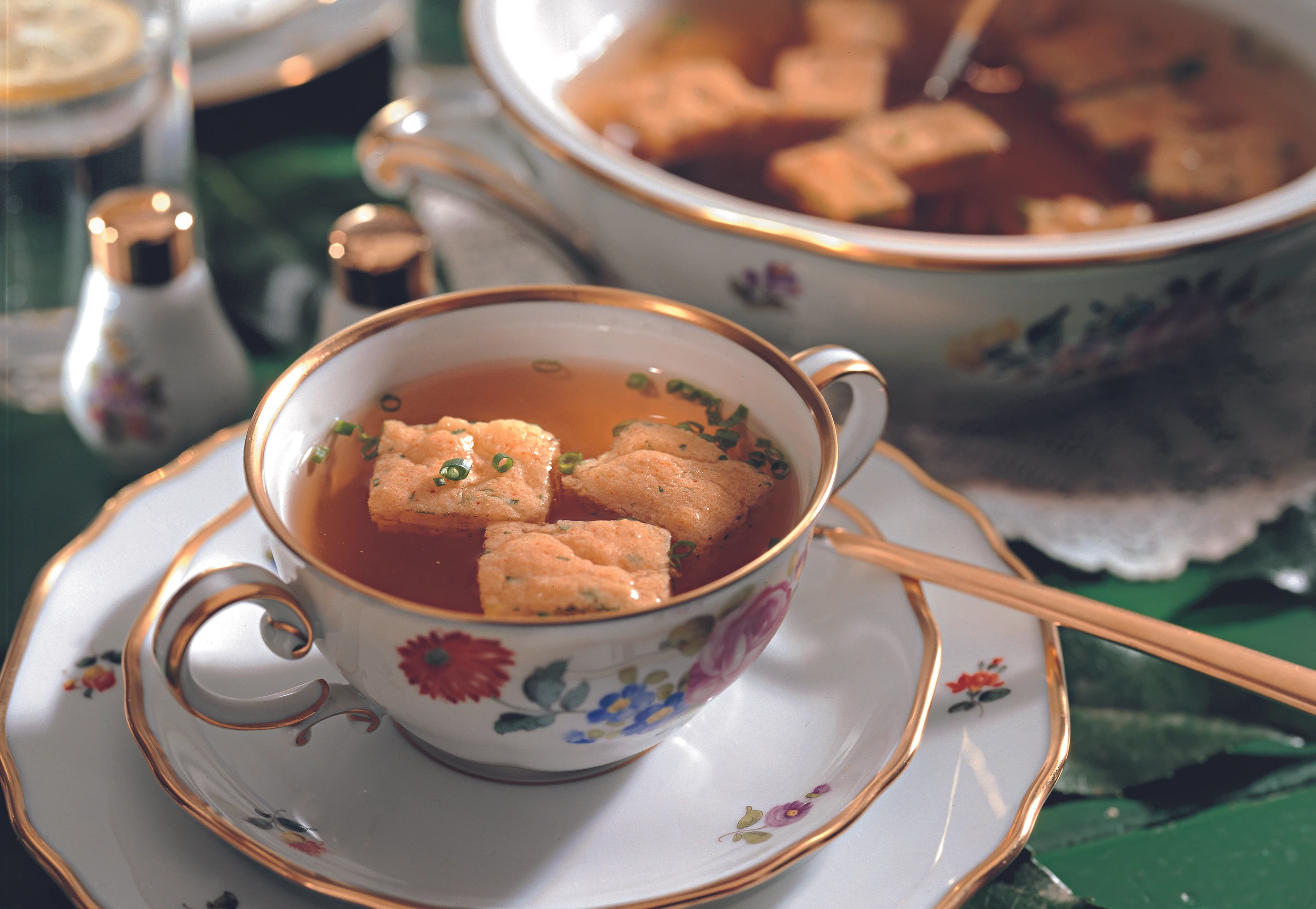 - 1 l Rindsuppe (oder klare Gemüsesuppe, siehe Tipp)