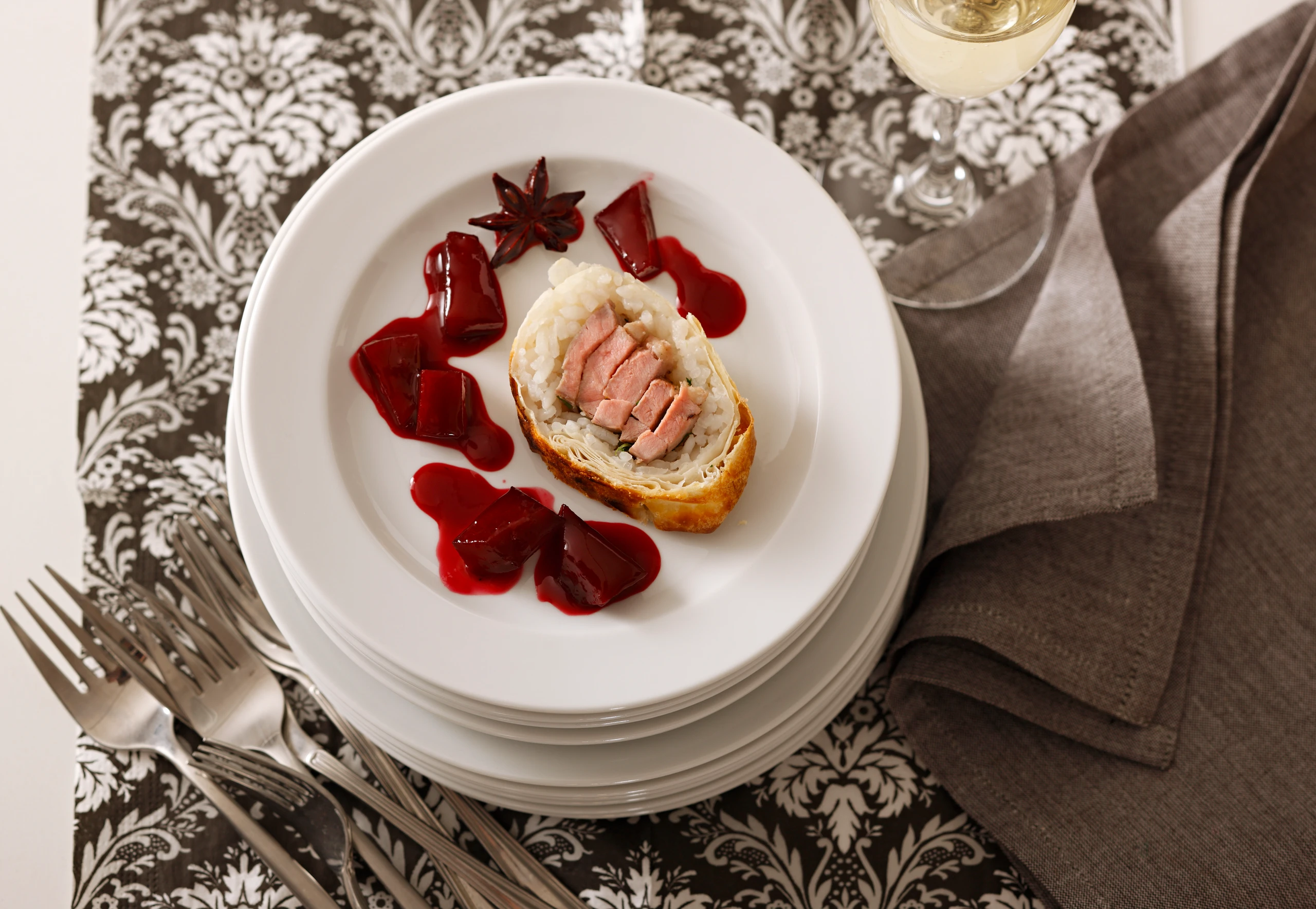 Sushireis-Entenrolle mit marinierten Roten Rüben