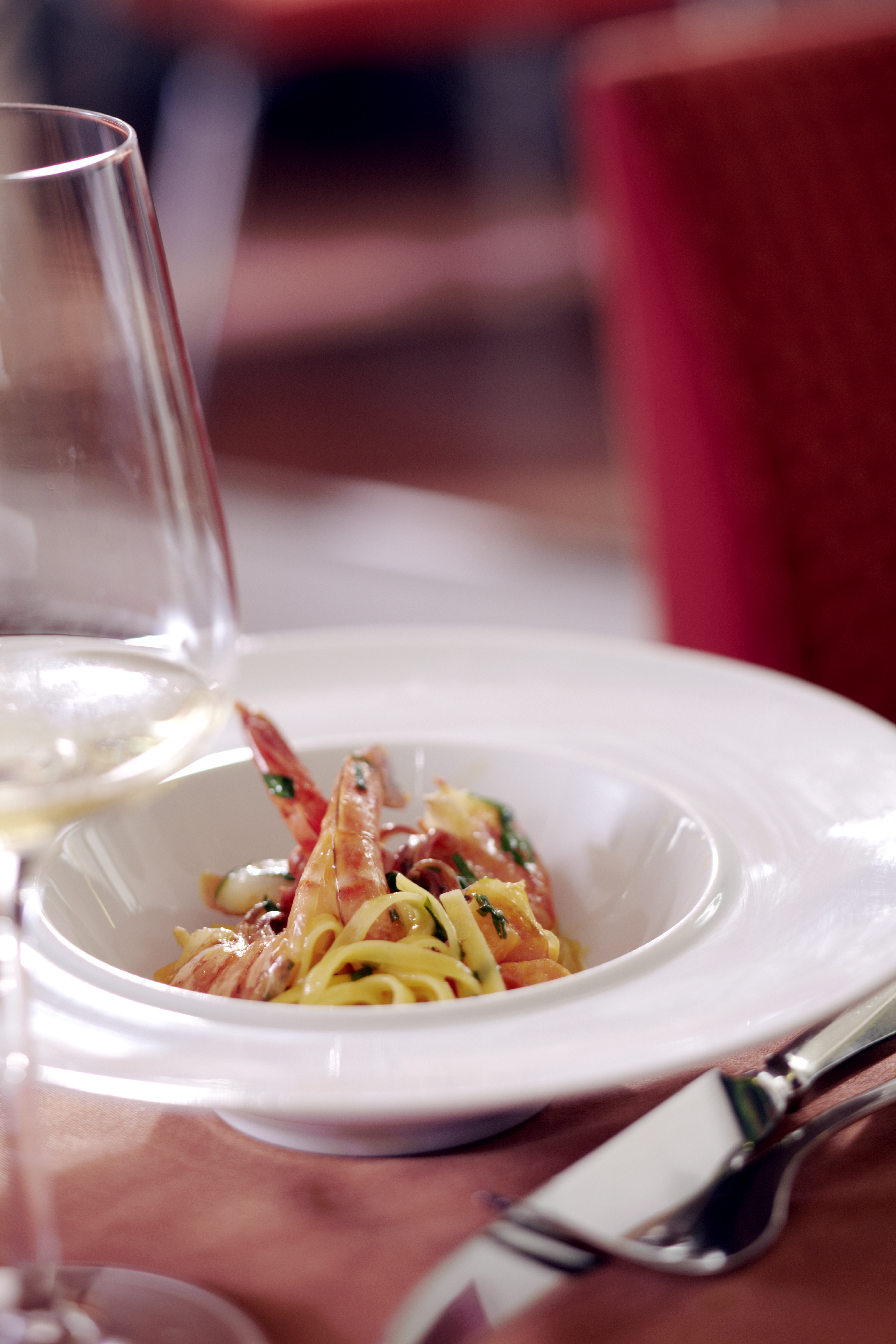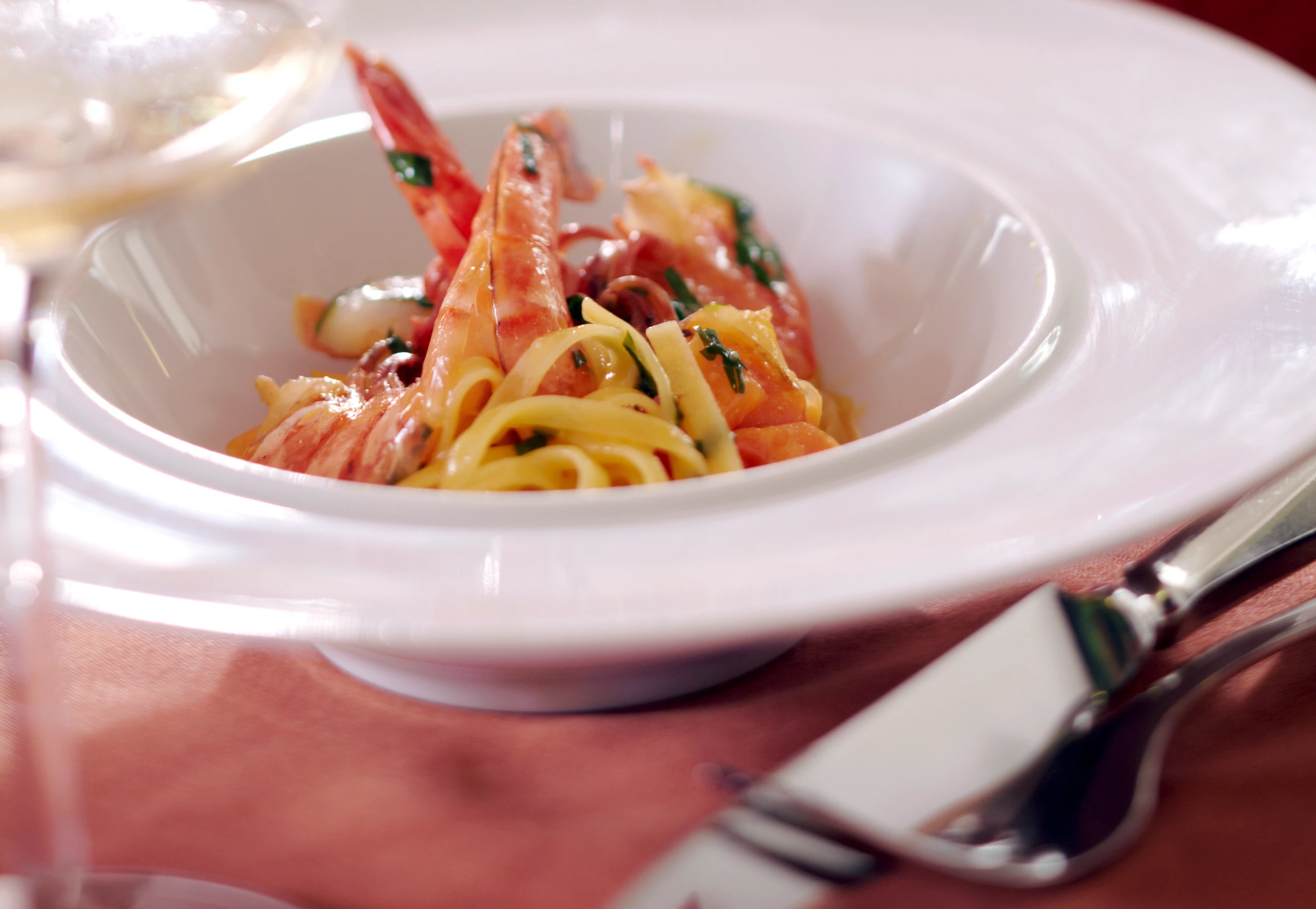 Tagliatelle mit Chili, Kürbis und Garnelen