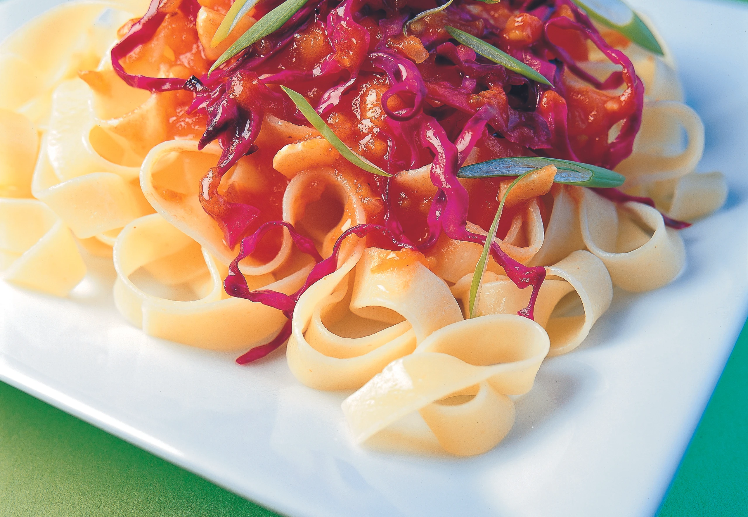 Tagliatelle mit Rotkraut-Tomaten-Sugo