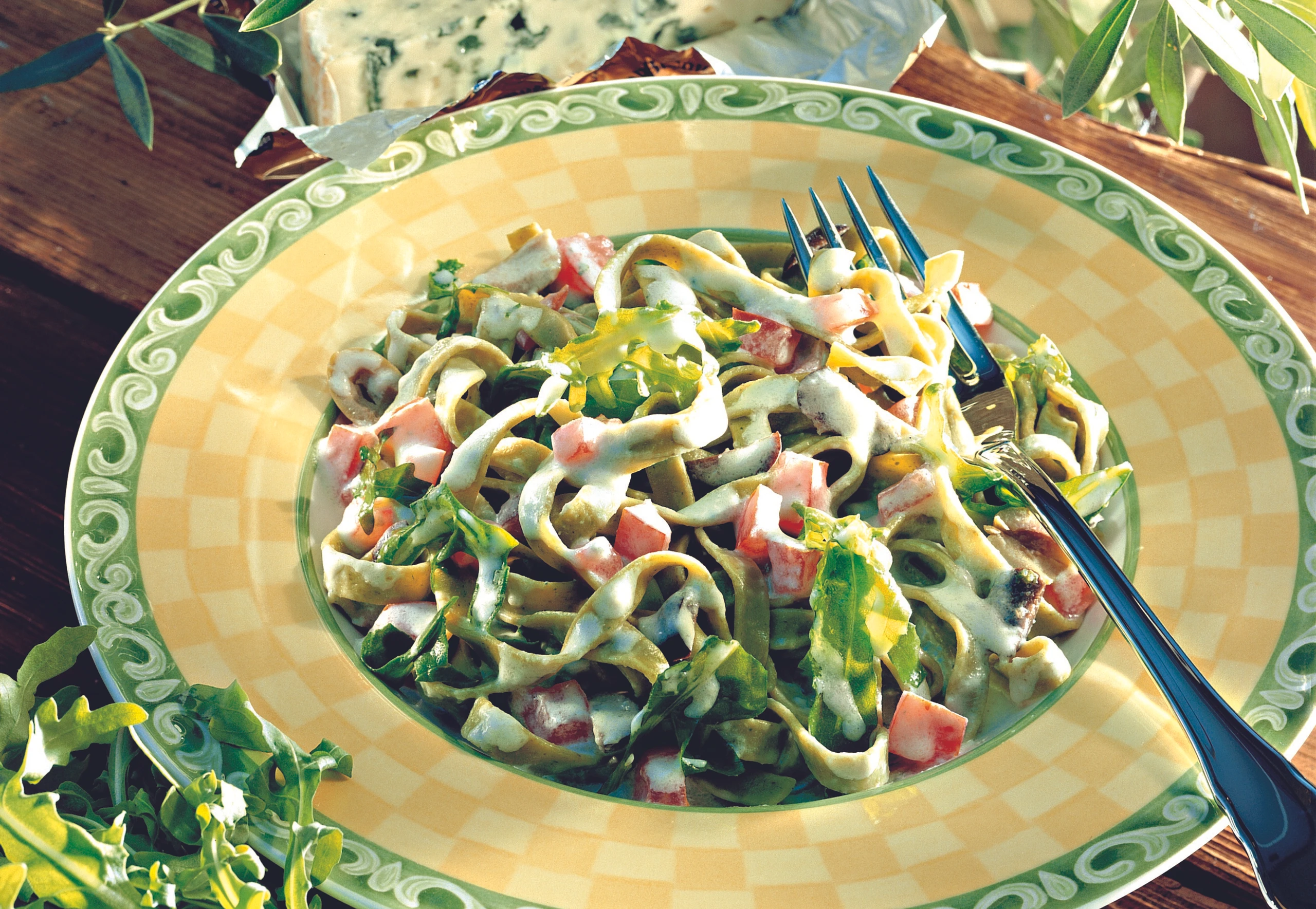 Tagliatelle verdi mit Gorgonzolasauce und Rucola
