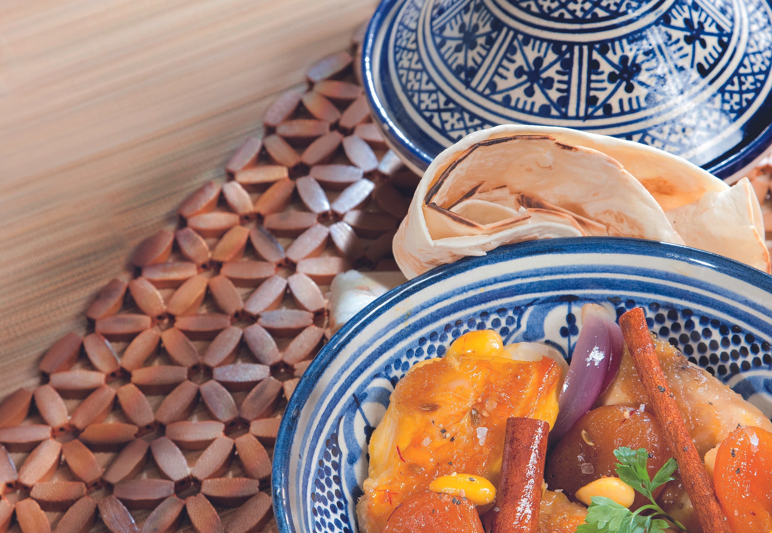 Tajine-Safranhuhn mit Roqaq-Fladenbrot